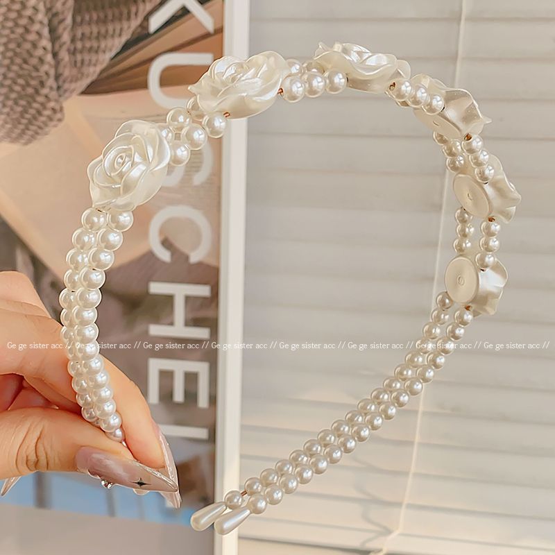 • 화이트 플라워 더블 레이어 진주 머리띠
