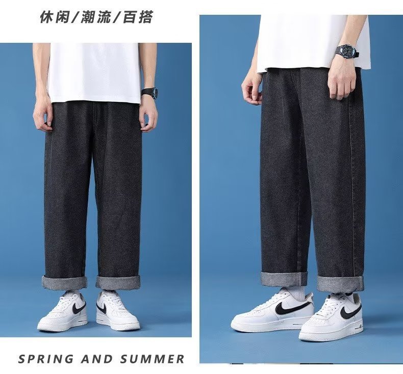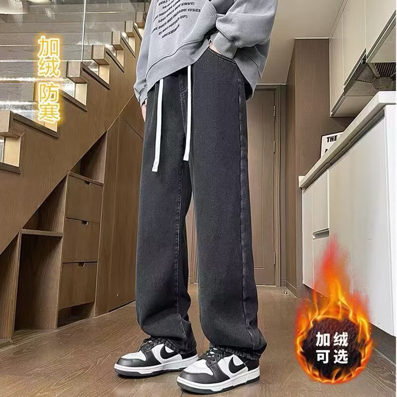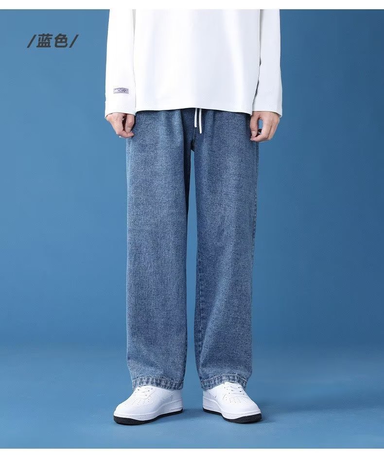 2024 남성용 청바지 새로운 봄 가을과 겨울 스트레이트 다리 넓은 다리 바지 느슨한 유행 캐주얼 바지스토어 가기