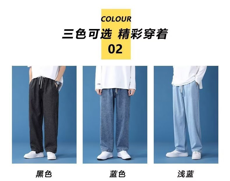 2024 남성용 청바지 새로운 봄 가을과 겨울 스트레이트 다리 넓은 다리 바지 느슨한 유행 캐주얼 바지