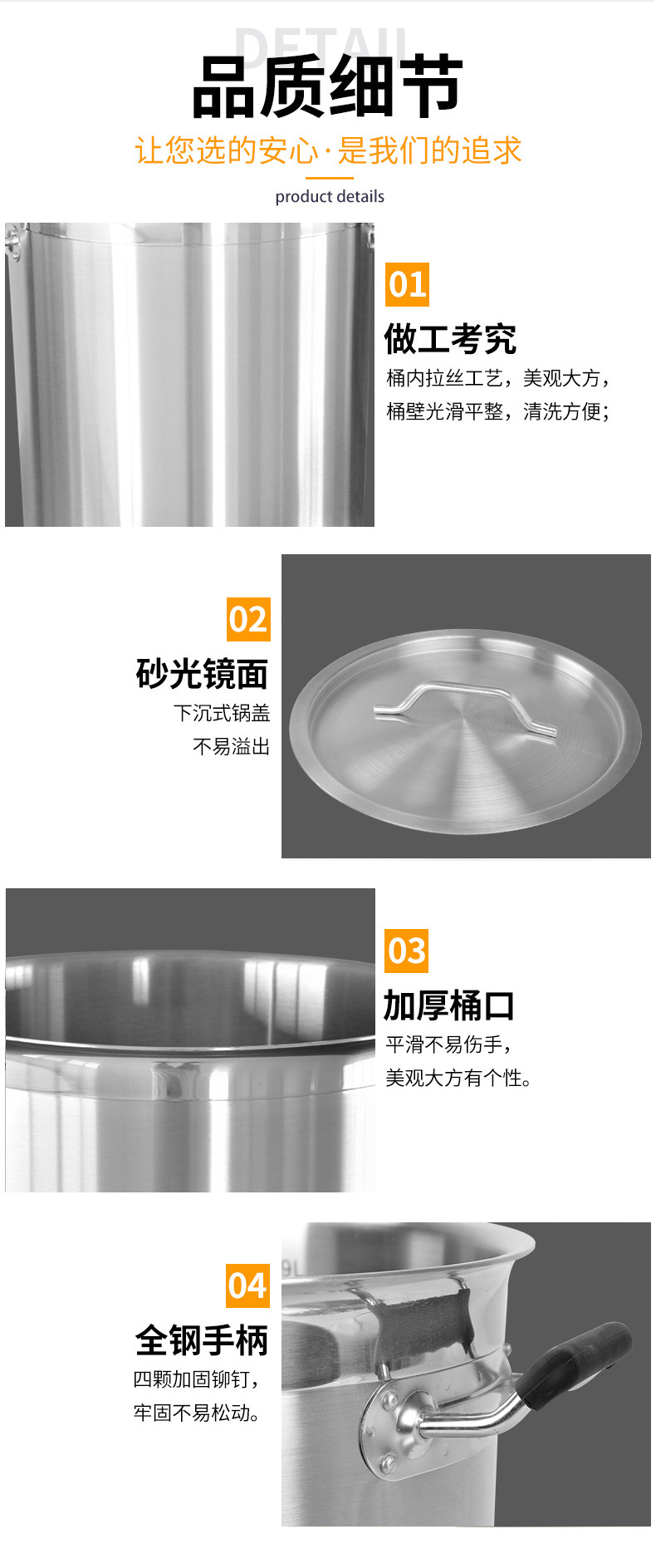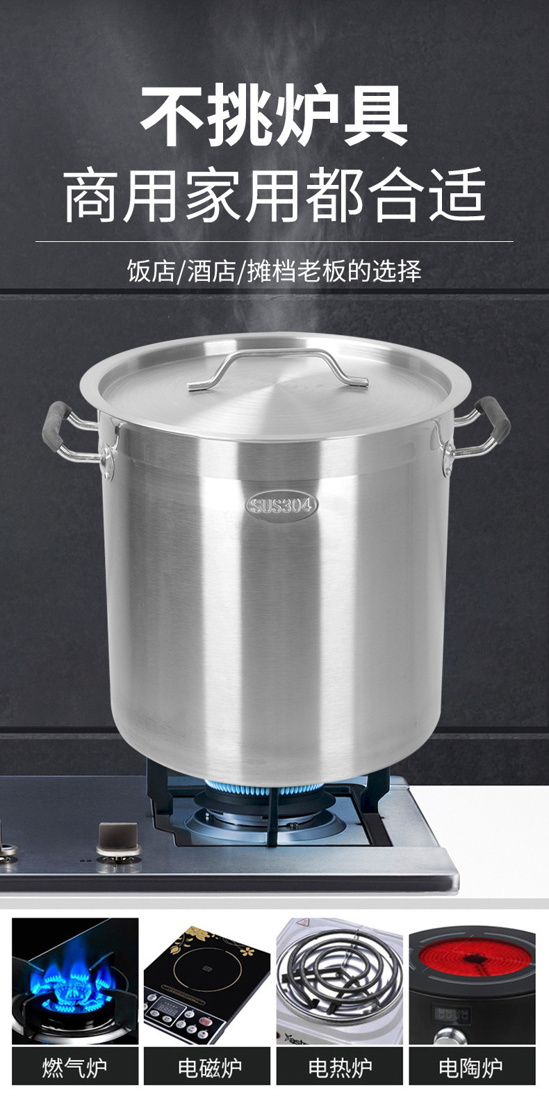 304 스테인레스 스틸 버킷 대용량 양쪽 귀 뚜껑 수프 냄비 크로스 보더 무역 스케일 냄비 스테인레스 스틸 수프 버킷 도매스토어 가기