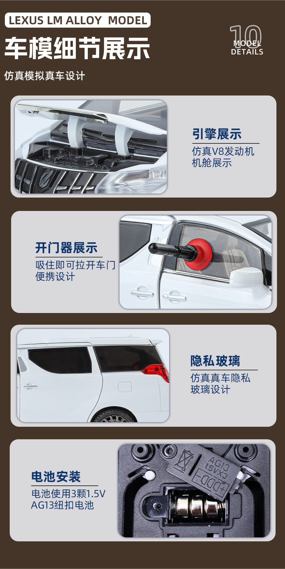 【商品材质】塑料/合金,车内配置三颗AG13型号钮扣电池