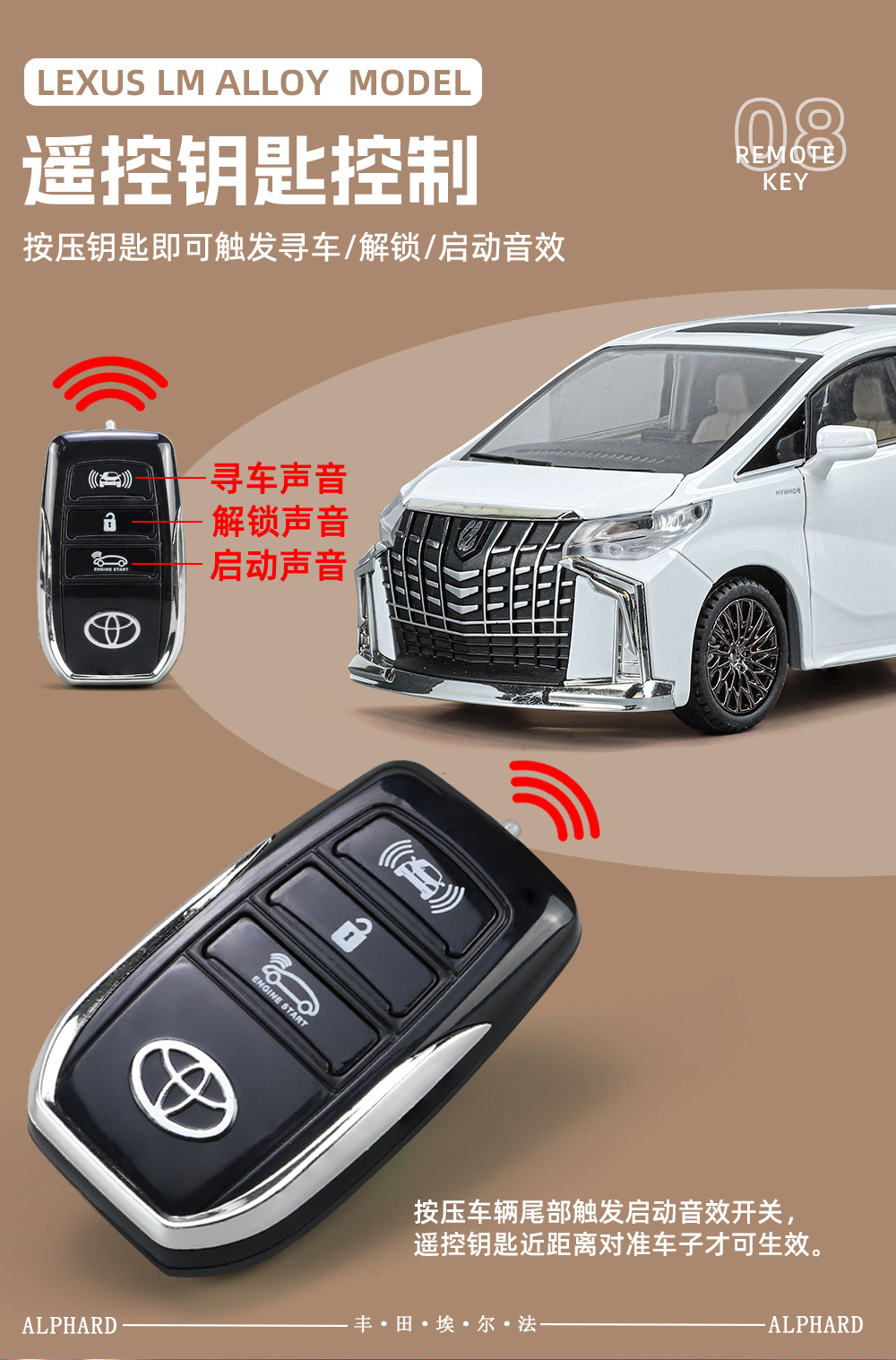 【商品名称】智冠天下1:24丰田埃尔法(钥匙版)