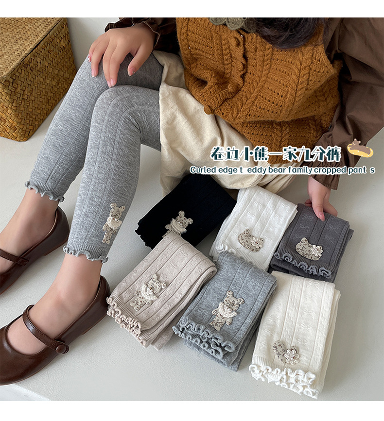 소녀 레깅스 봄과 가을 새로운 도착 자른 높은 허리 매달려 자른 자른 곰 가족 어린이 바지 올매치 공주 바지스토어 가기