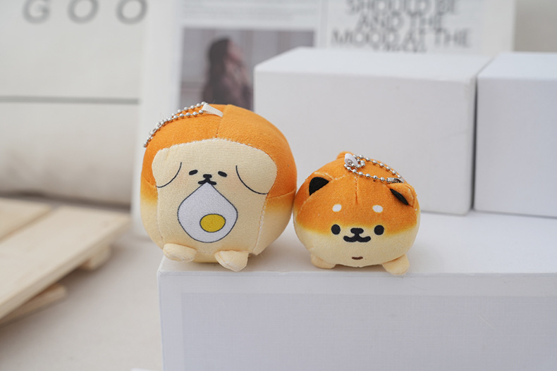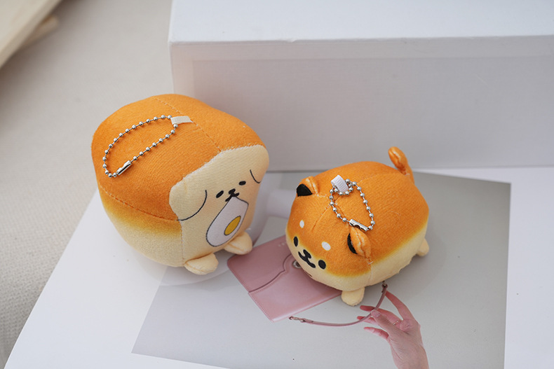 귀여운 토스트빵 강아지 플러시 키체인 인형 커플 가방 키체인 인형