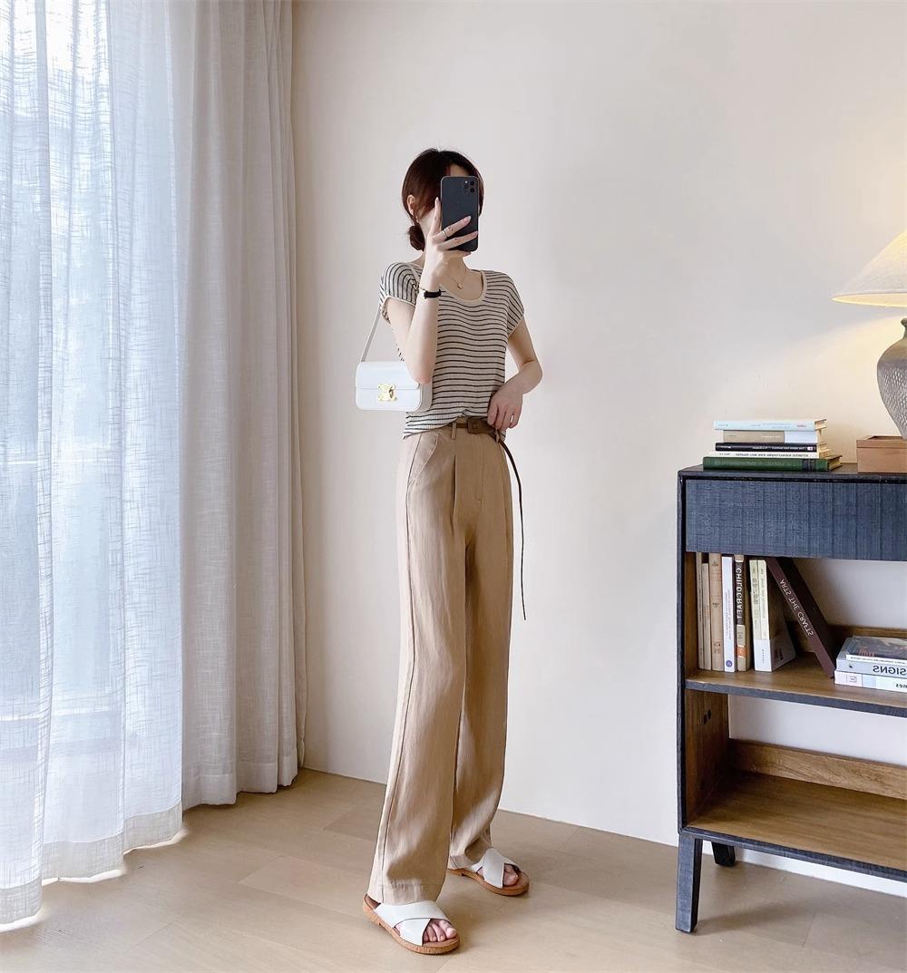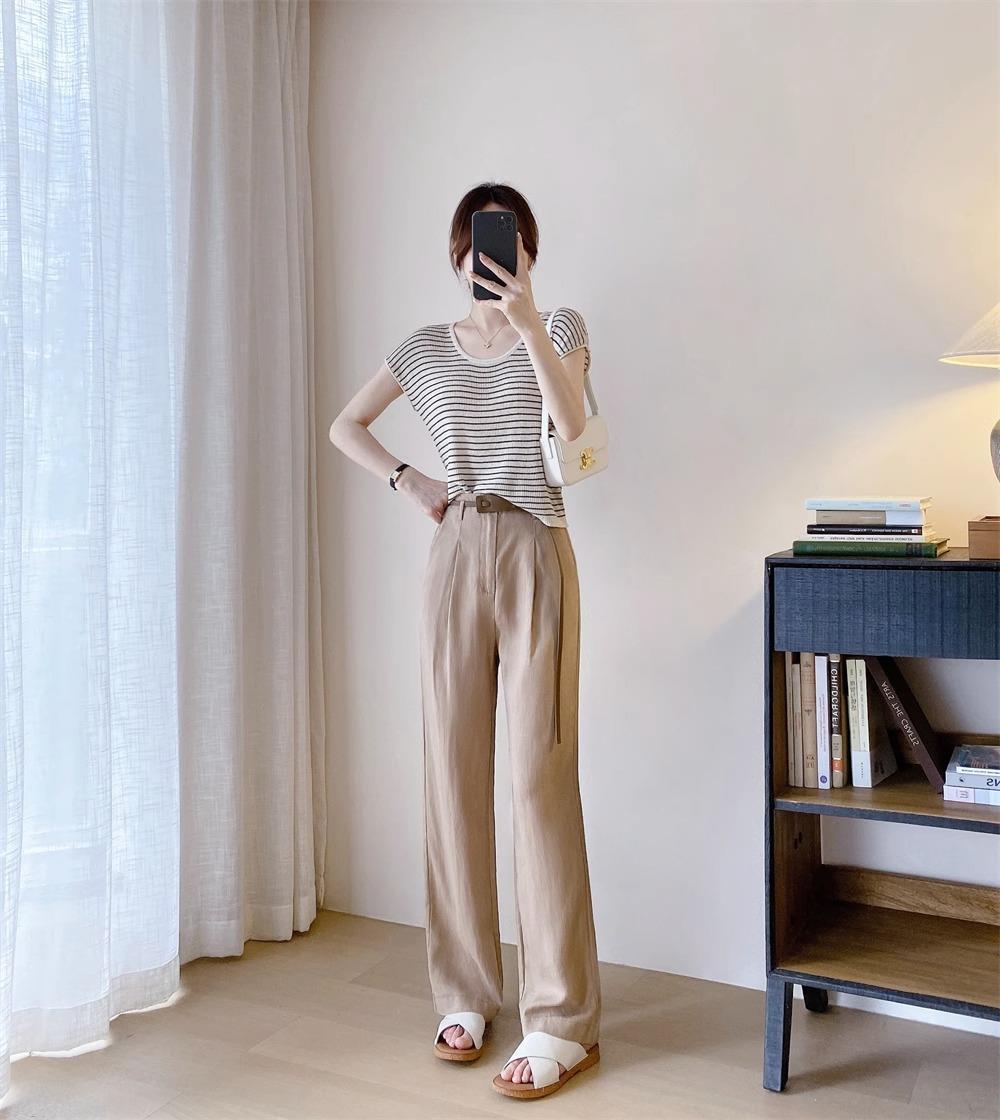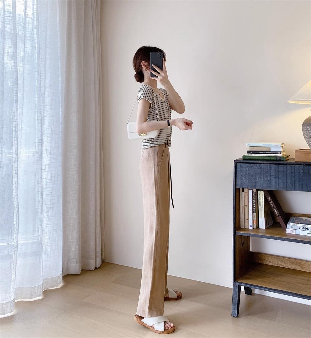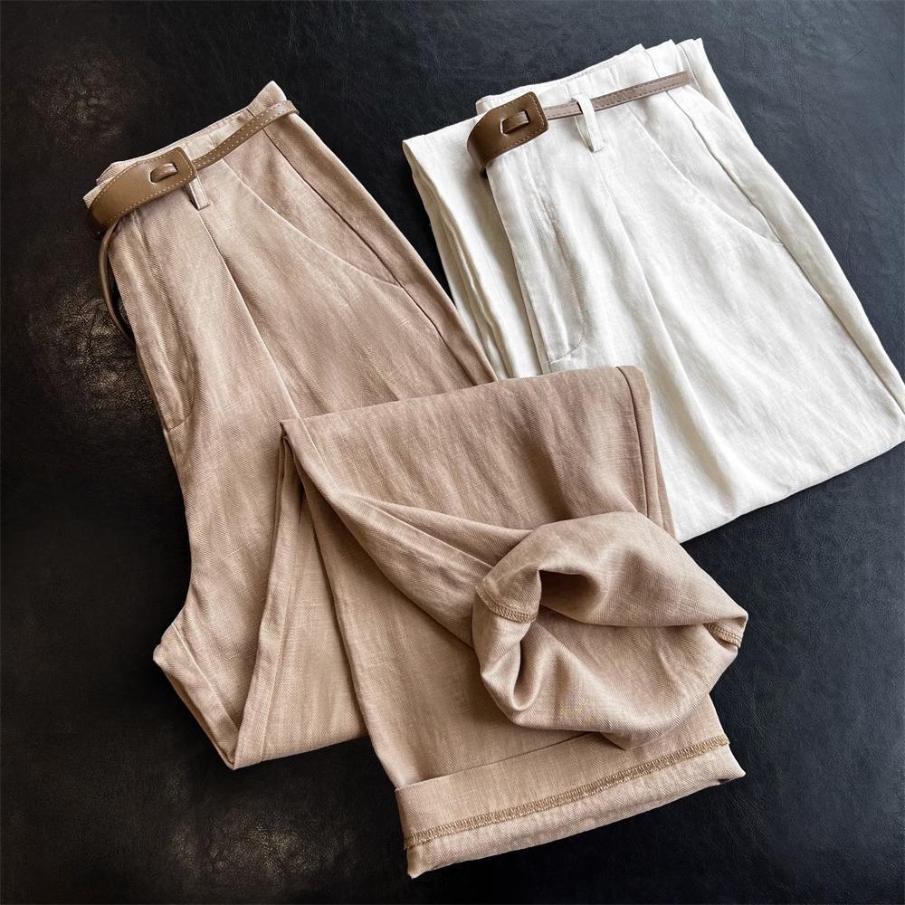 하이 엔드 텐셀 리넨 캐주얼 여성 의류 좁은 높은 허리 슬리밍 스트레이트 다리 바지스토어 가기