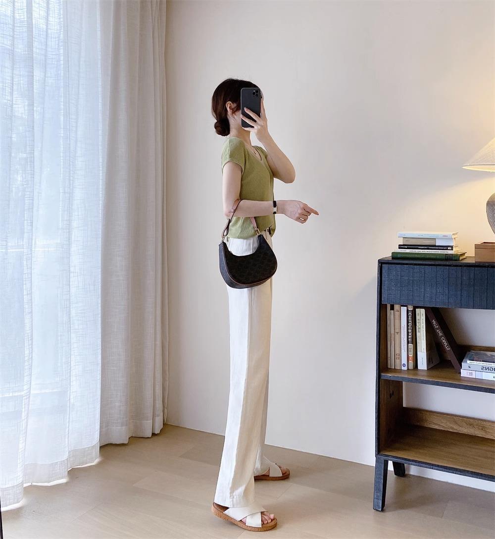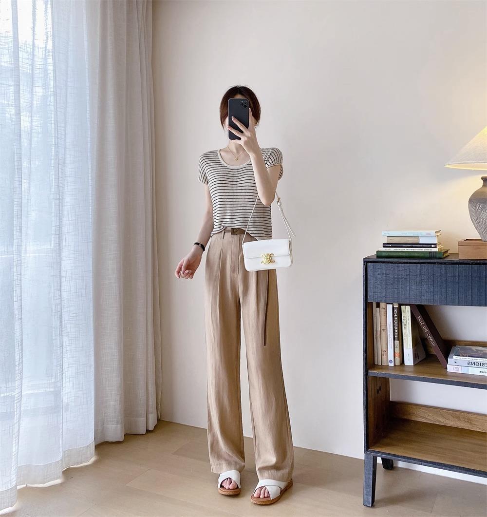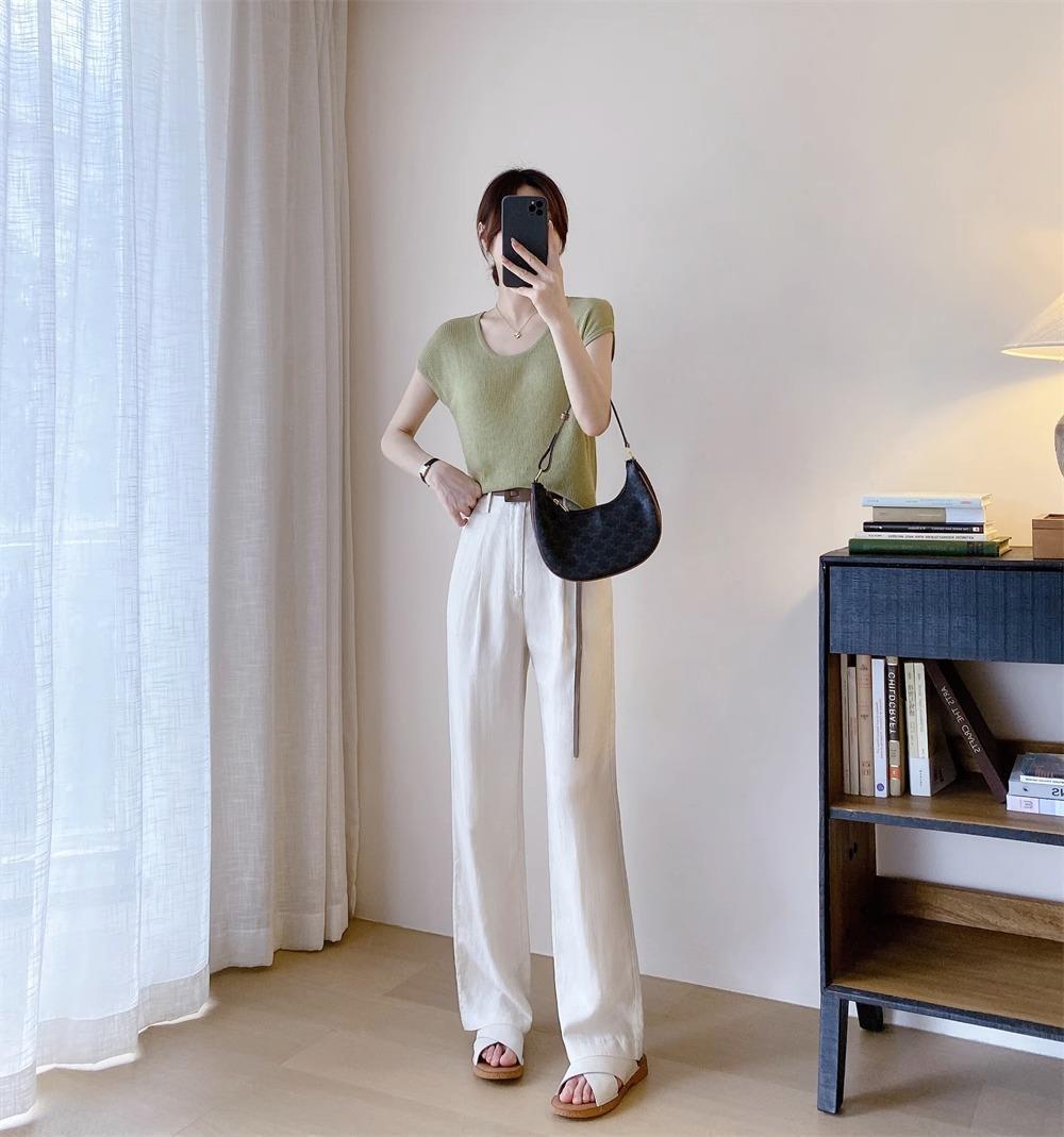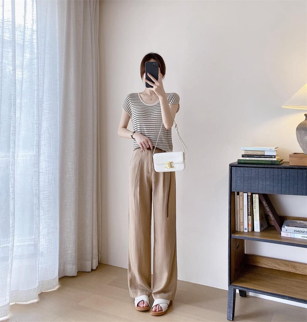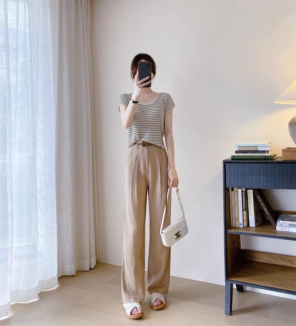 하이 엔드 텐셀 리넨 캐주얼 여성 의류 좁은 높은 허리 슬리밍 스트레이트 다리 바지스토어 가기