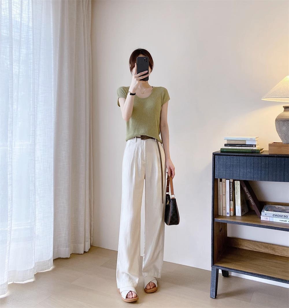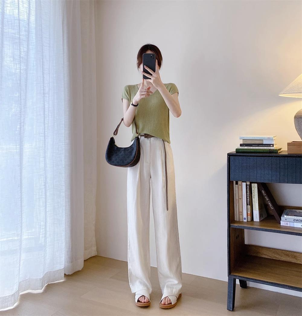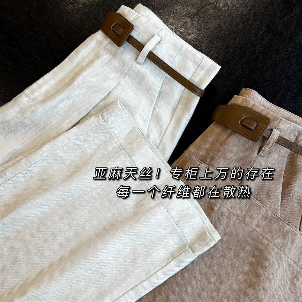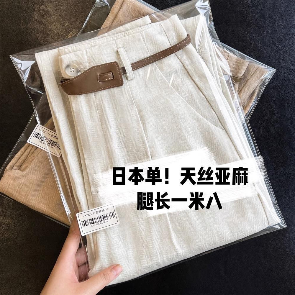 高端天丝亚麻麻料休闲女装窄版高腰显瘦直筒甩裤拖地长裤阔腿裤女