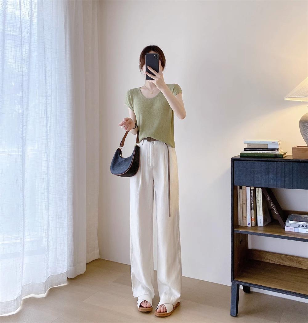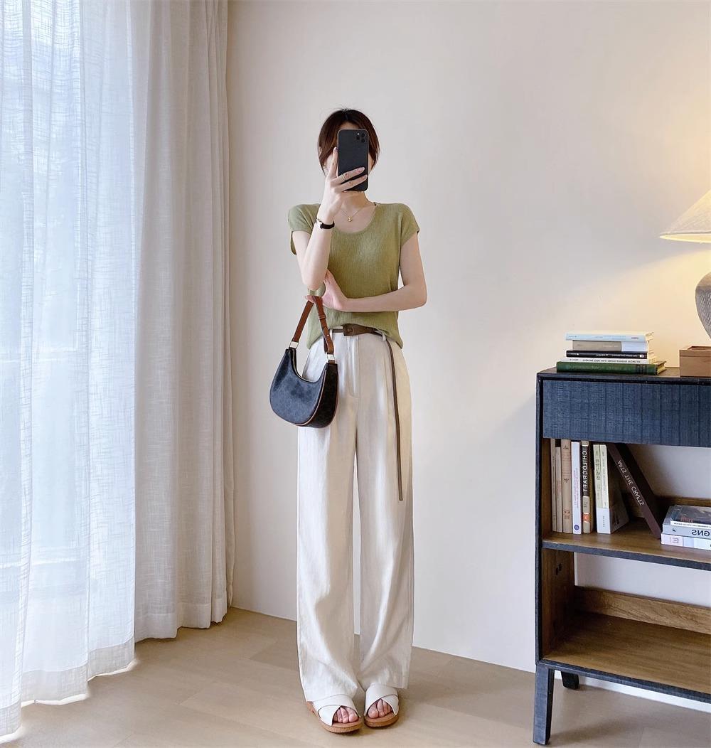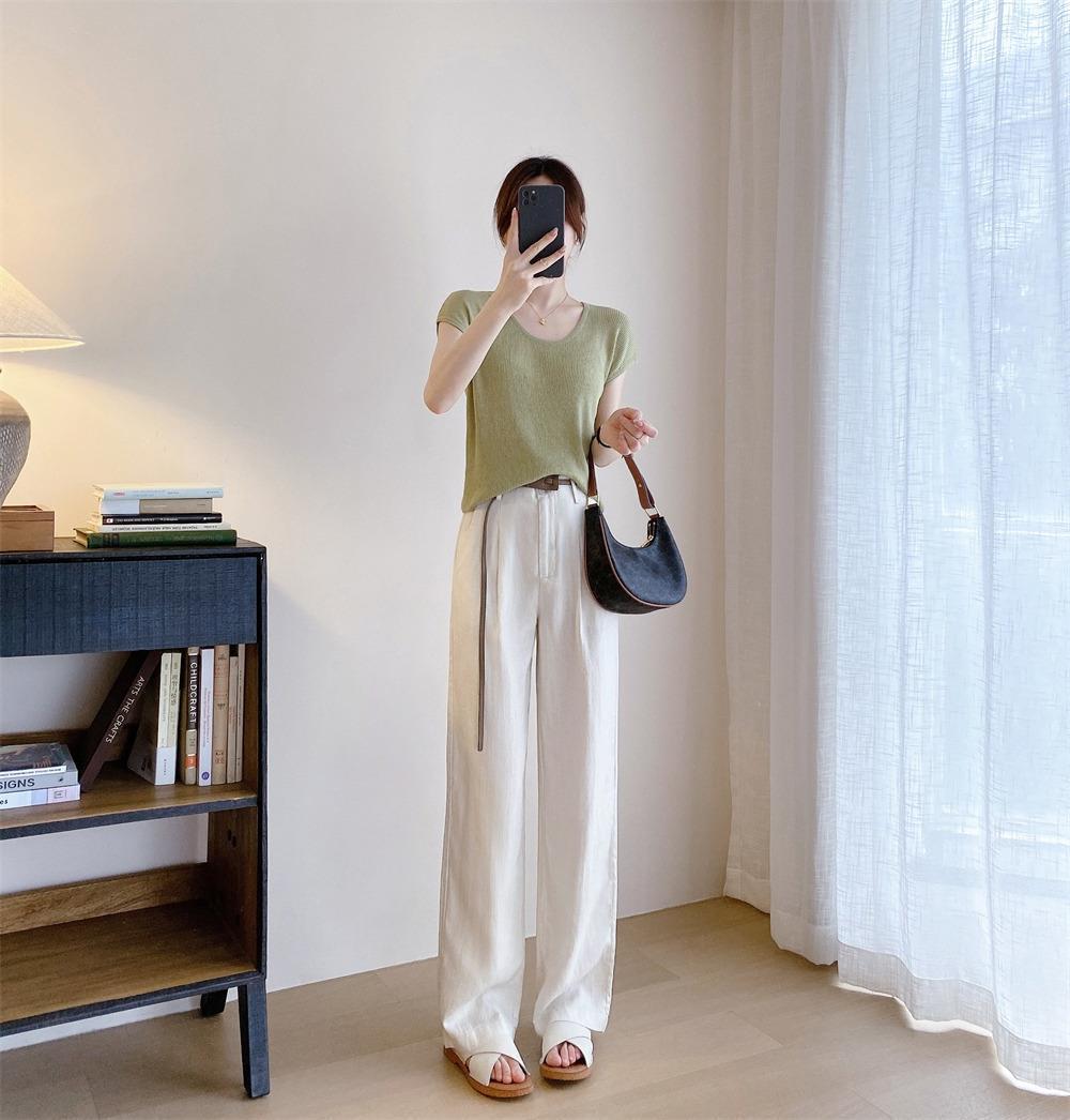 高端天丝亚麻麻料休闲女装窄版高腰显瘦直筒甩裤拖地长裤阔腿裤女