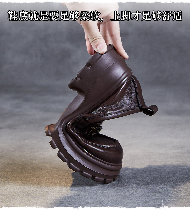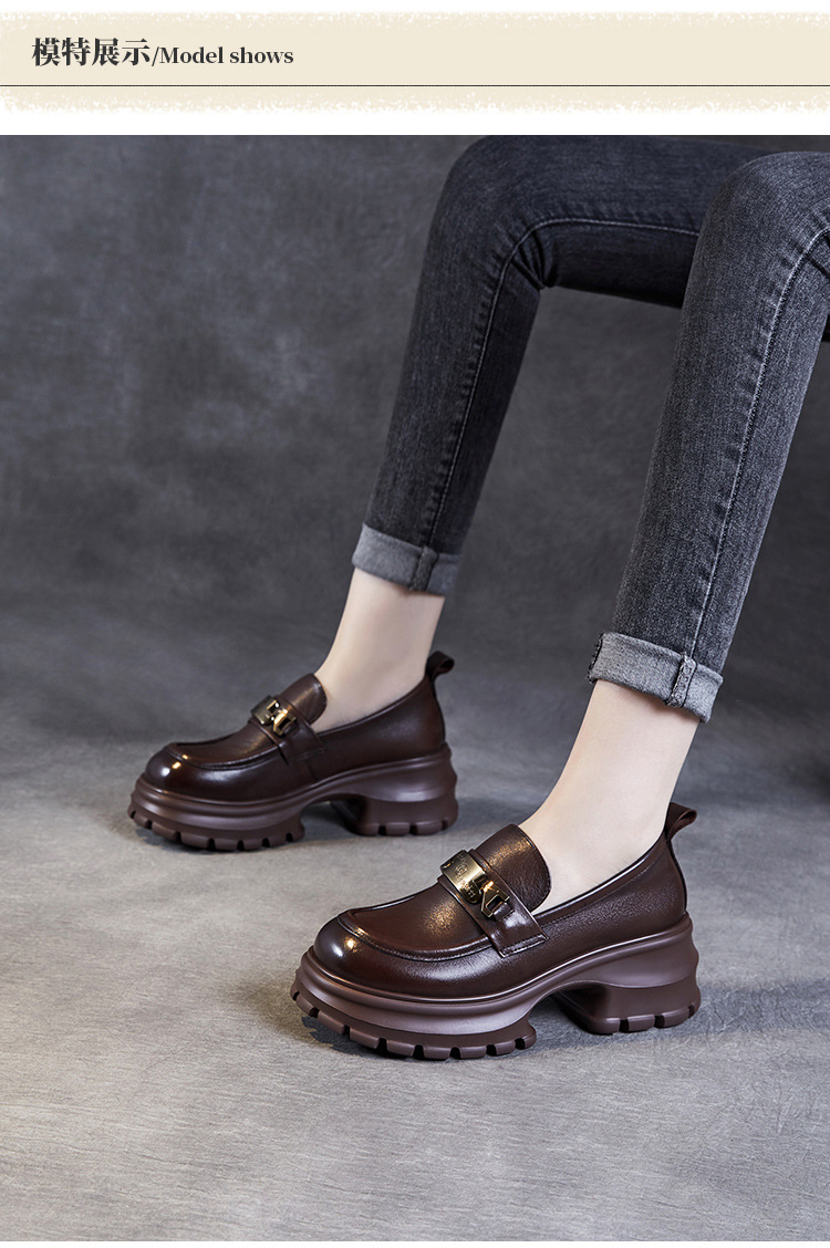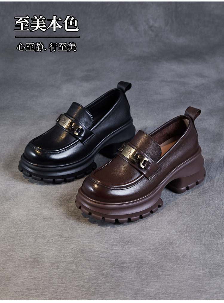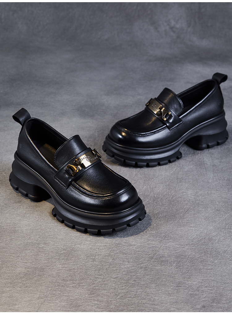 탑 레이어 Cowhide Loafers 2024 봄과 가을 새로운 정품 가죽 여성 신발 플랫폼 단일 레이어 신발 캐주얼 조커 작은 가죽 신발스토어 가기