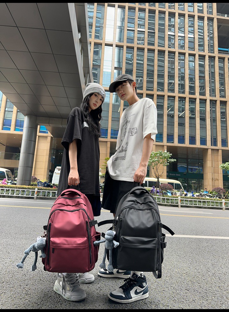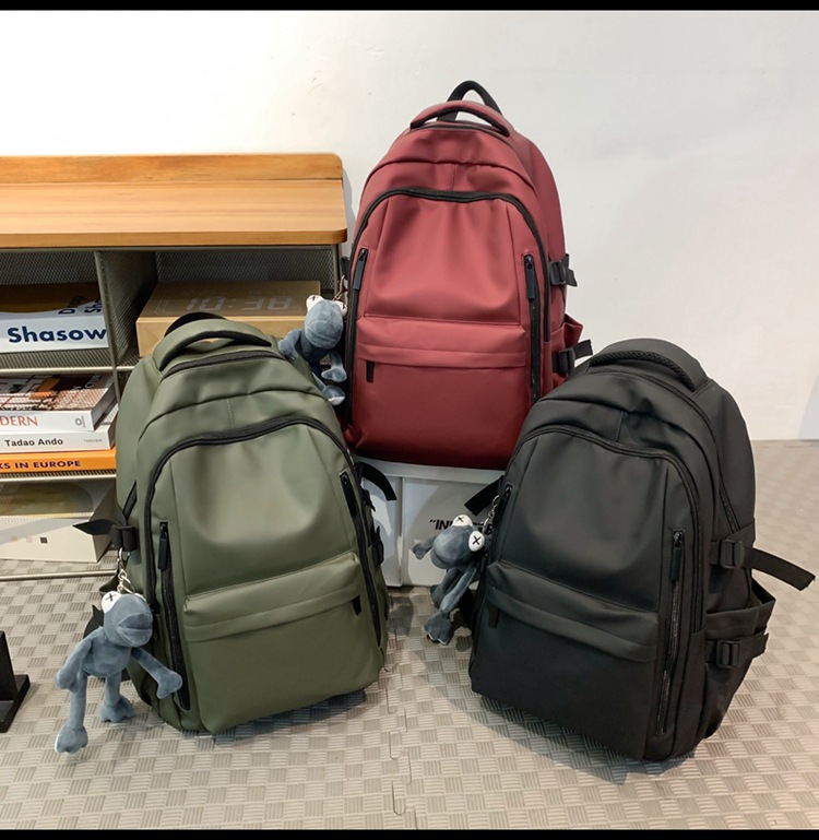 대용량 배낭 남자의 방수 여행 배낭 간단한 단색 중학교 학생 고등학생 여자를위한 대학생 학교 가방