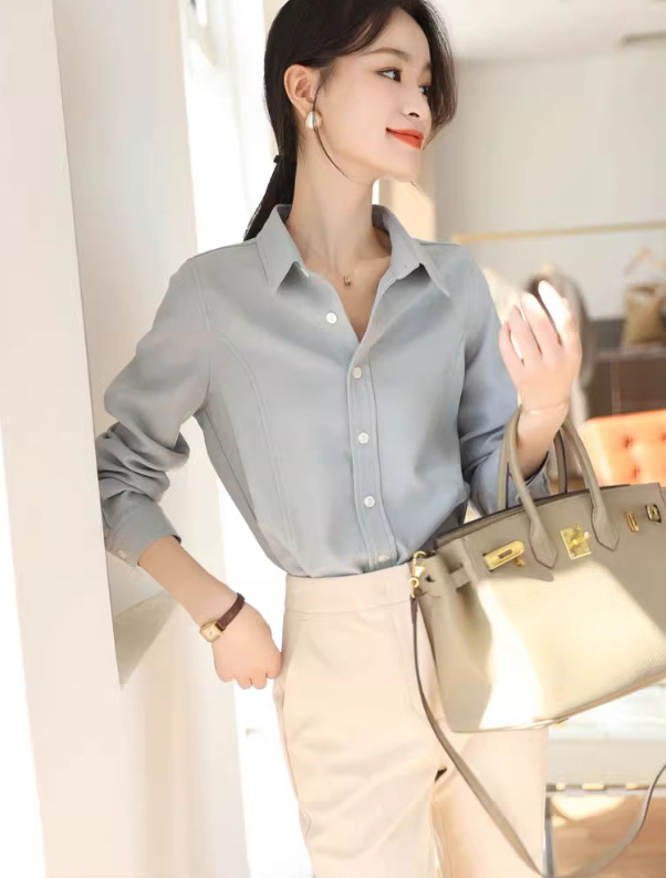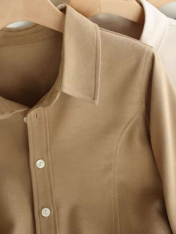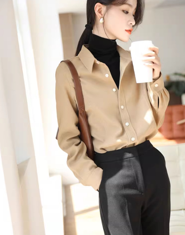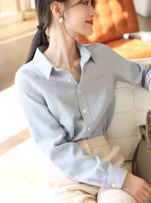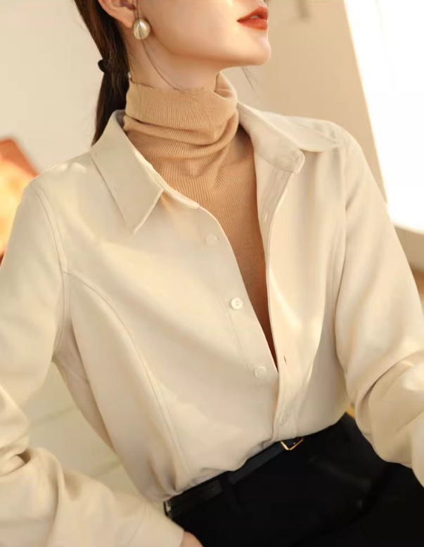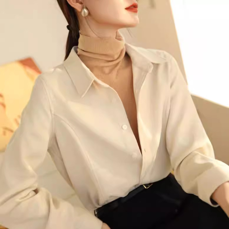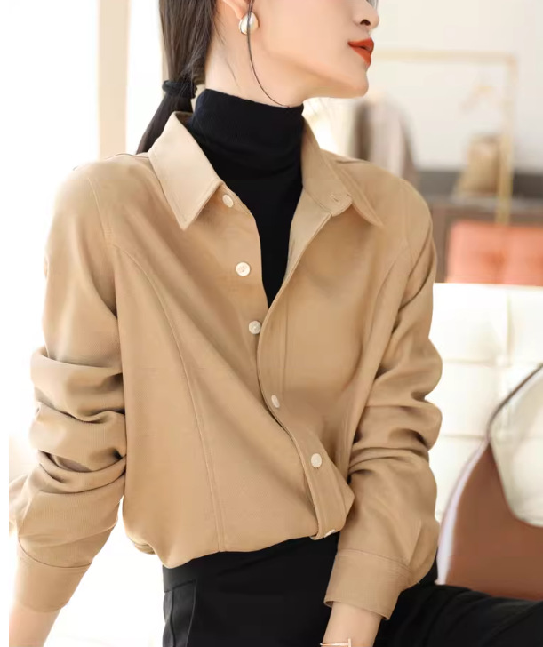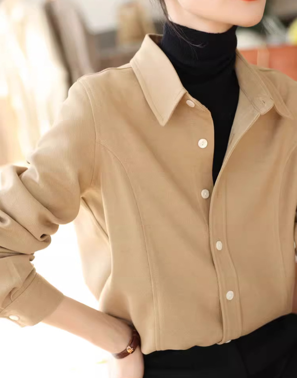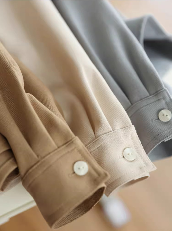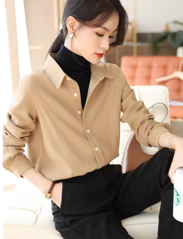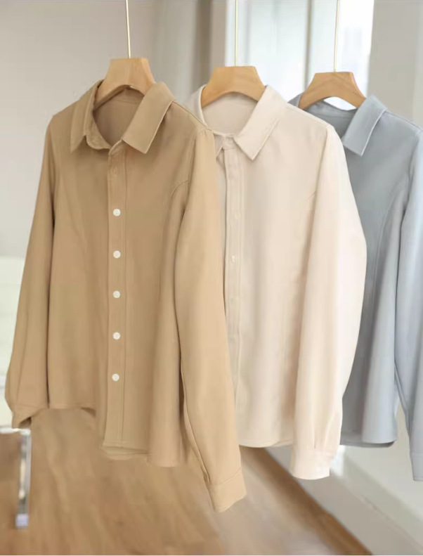 입 폭발의 말씀 2024 가을과 겨울 샌딩 고급 벨벳 솔리드 컬러 느슨한 슬리밍 긴 소매 셔츠 여성의 쌓을 수있는 가을과 겨울스토어 가기