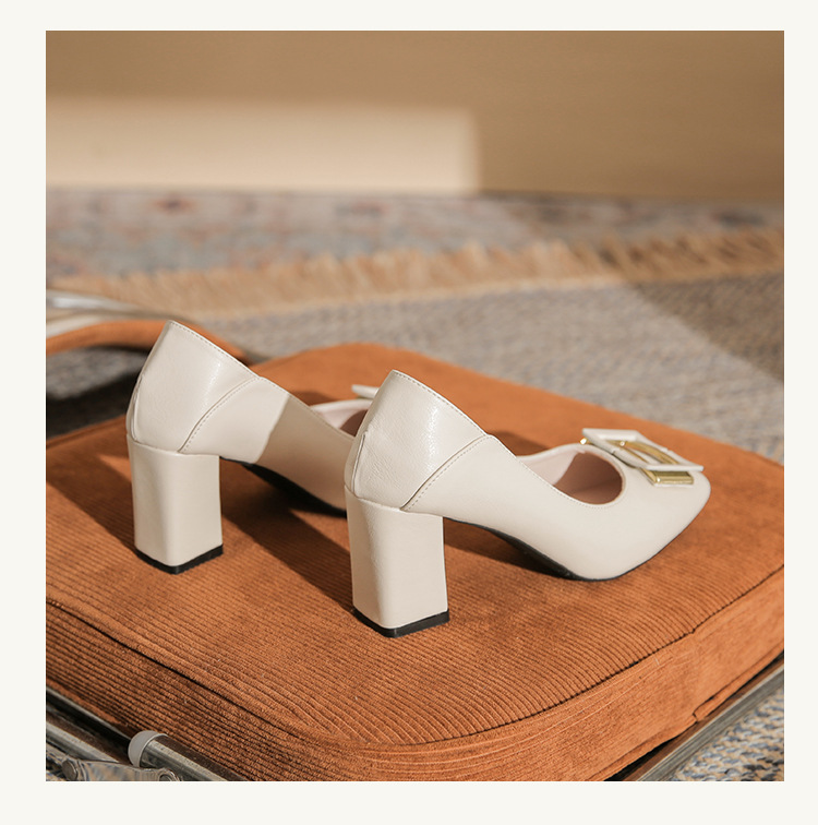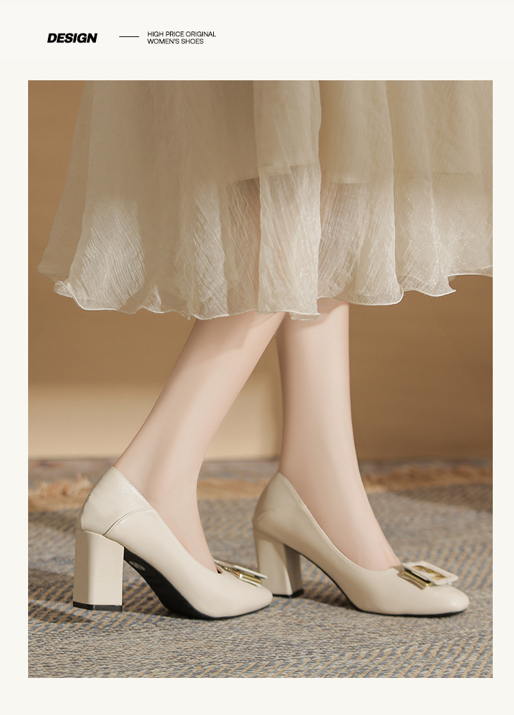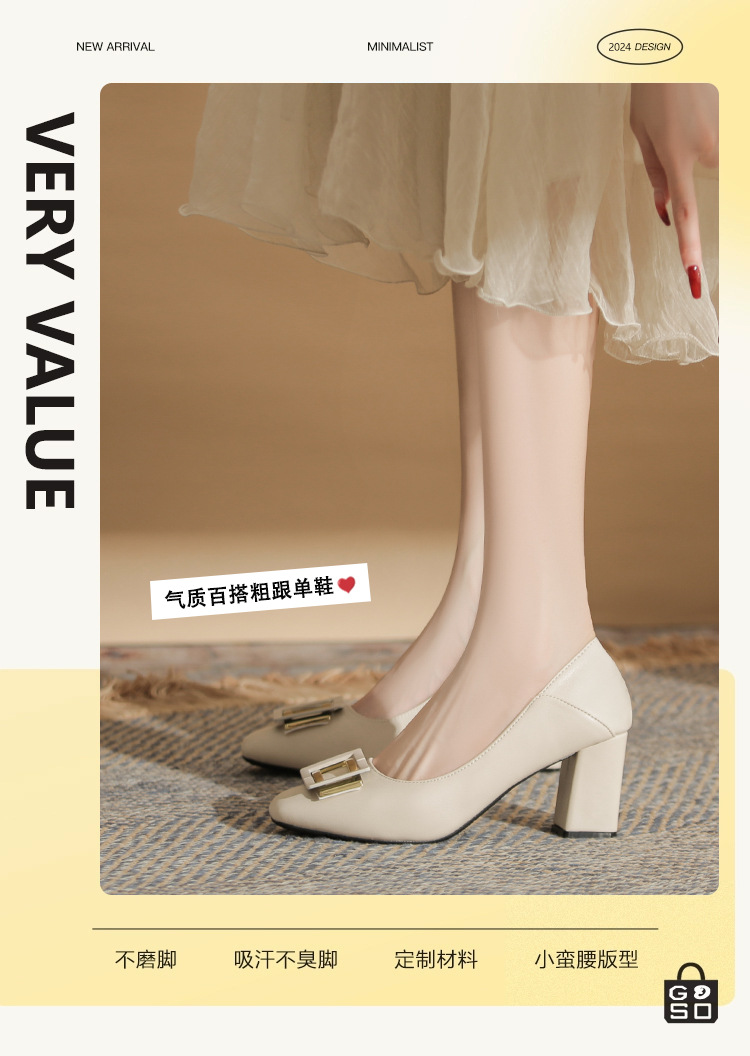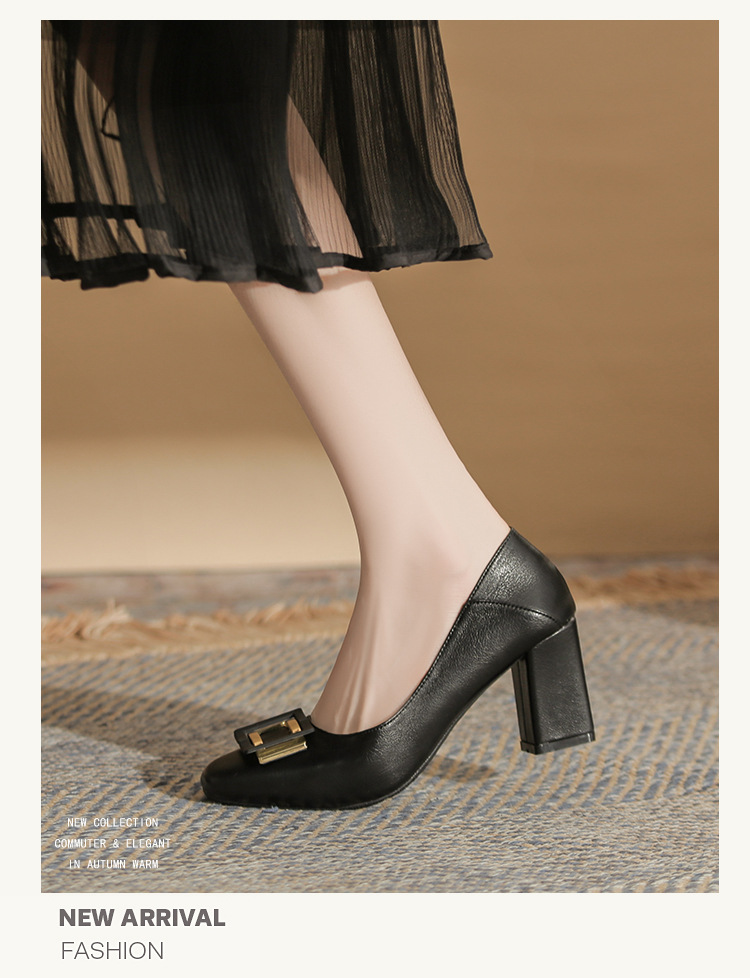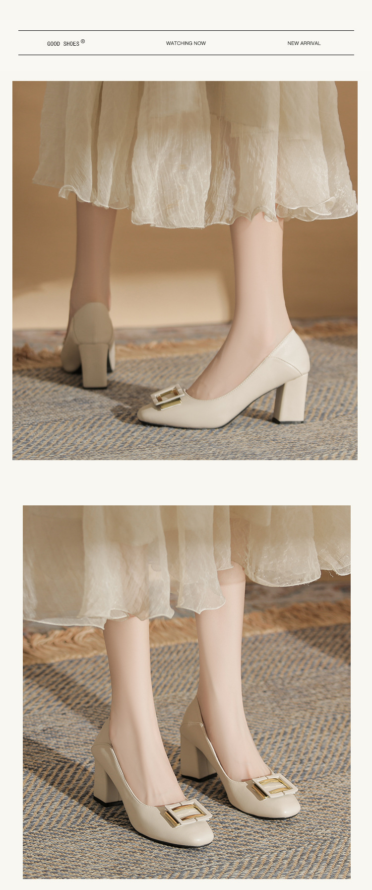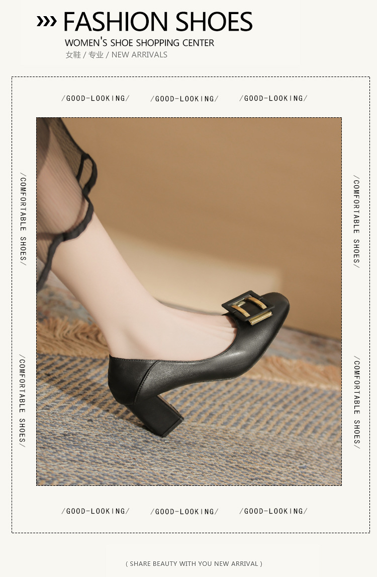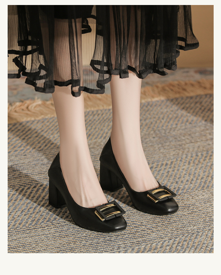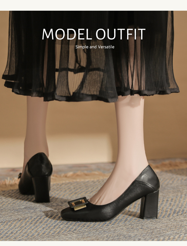 굽 높은 신발 여성의 2024 새로운 사각형 머리 두꺼운 뒤꿈치 플러스 사이즈 여성의 단층 신발이 살찌고 발이 피곤하지 않은 통근 작업 사각형 버클을 넓혔습니다.