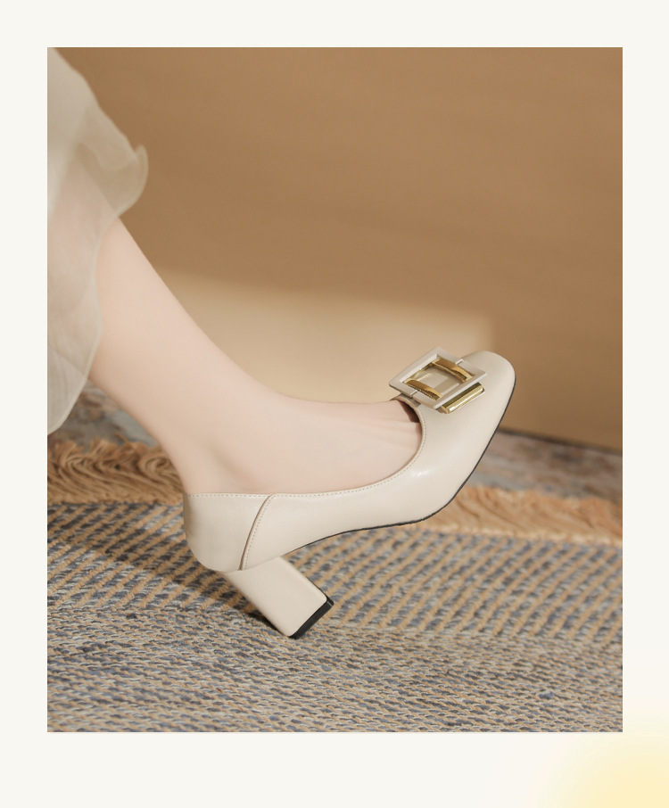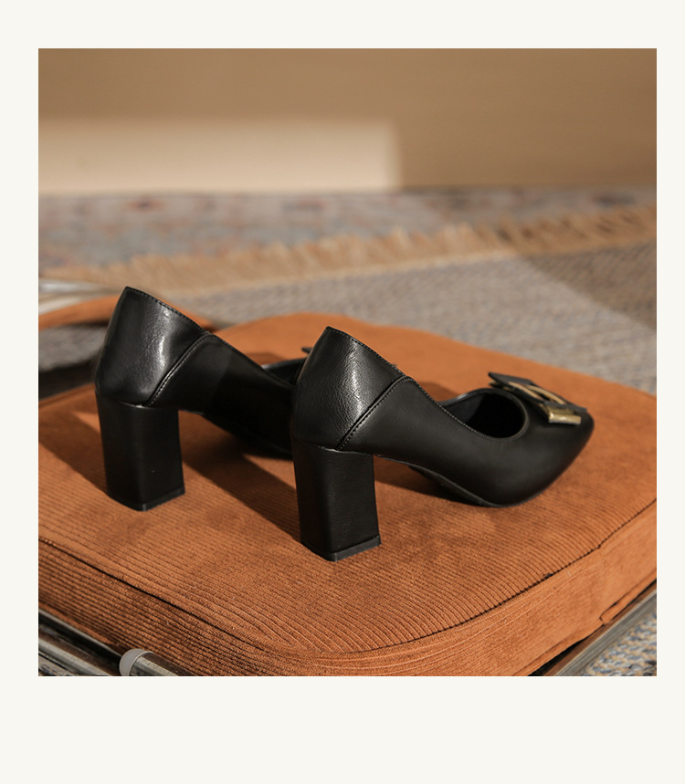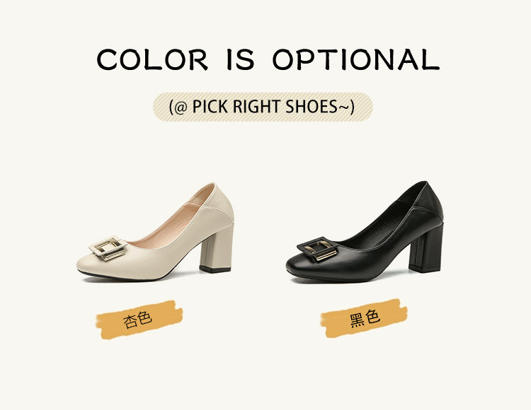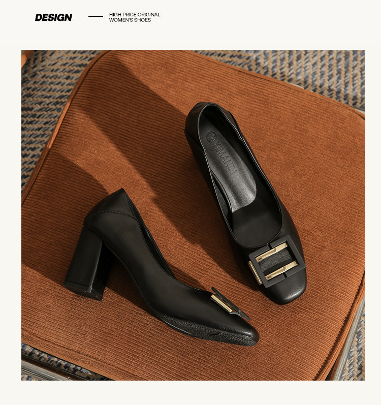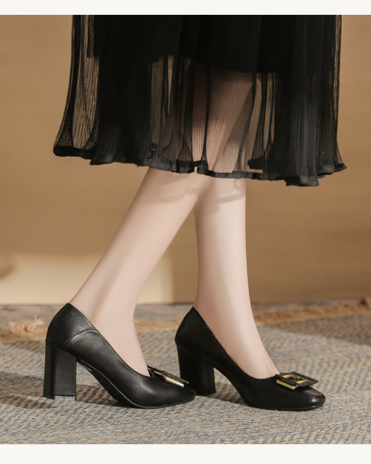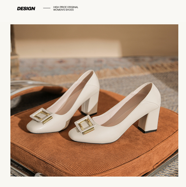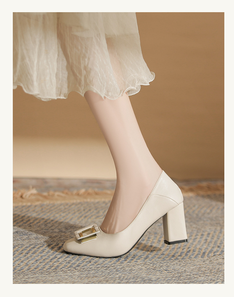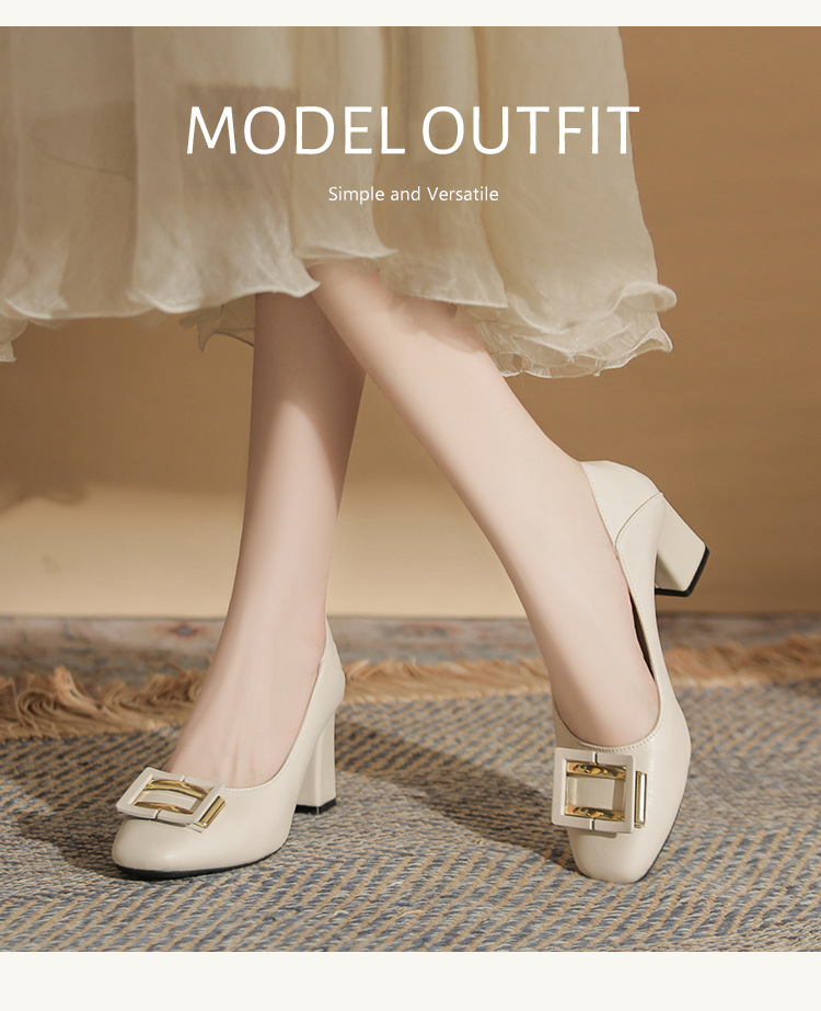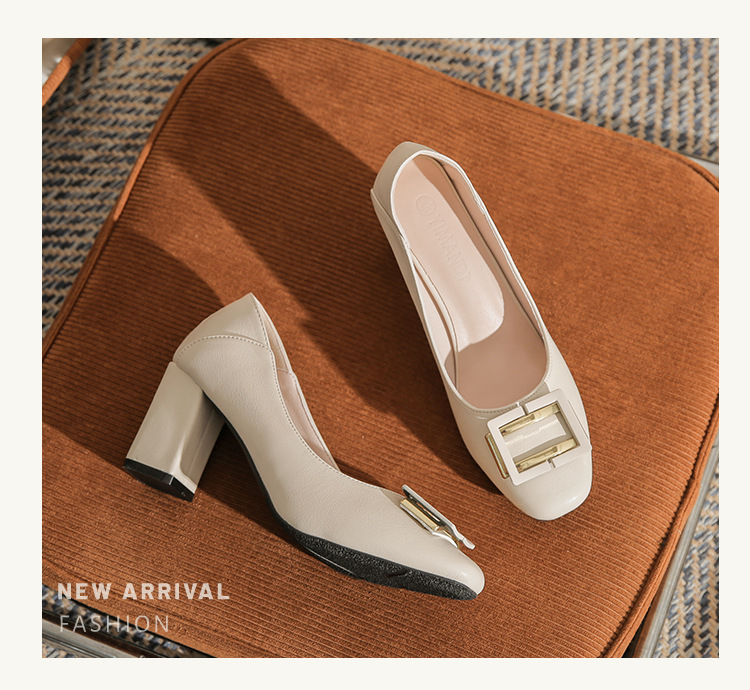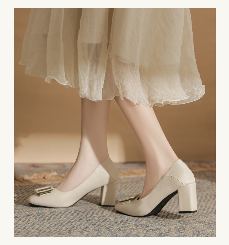 굽 높은 신발 여성의 2024 새로운 사각형 머리 두꺼운 뒤꿈치 플러스 사이즈 여성의 단층 신발이 살찌고 발이 피곤하지 않은 통근 작업 사각형 버클을 넓혔습니다.