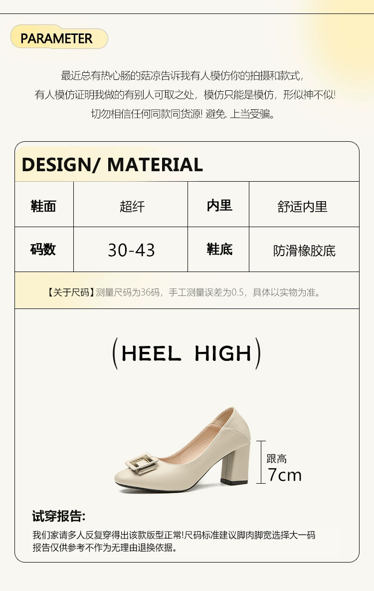 굽 높은 신발 여성의 2024 새로운 사각형 머리 두꺼운 뒤꿈치 플러스 사이즈 여성의 단층 신발이 살찌고 발이 피곤하지 않은 통근 작업 사각형 버클을 넓혔습니다.스토어 가기