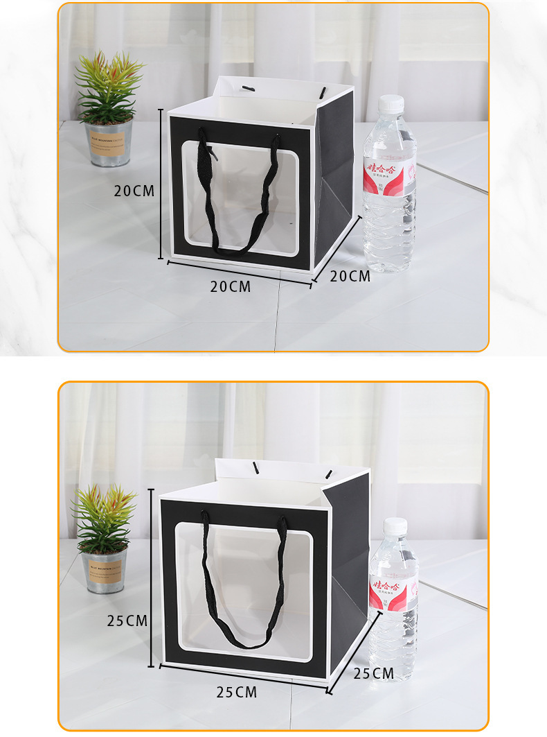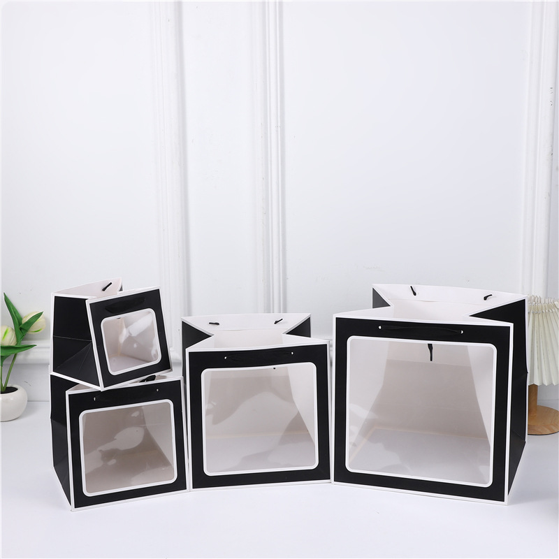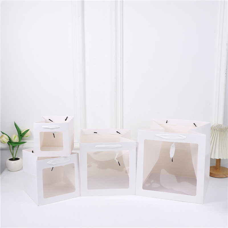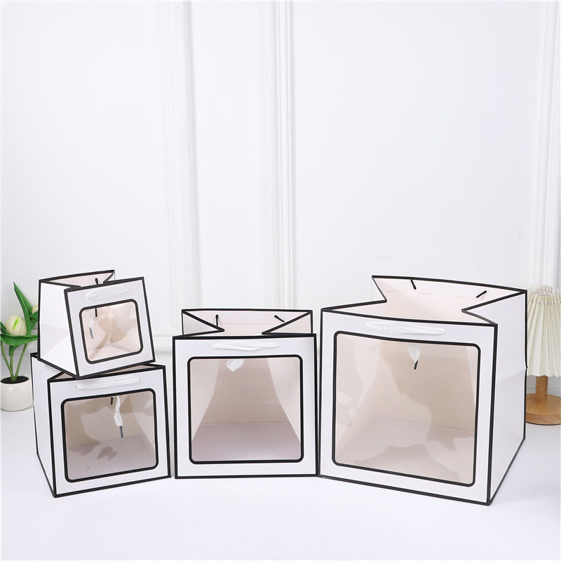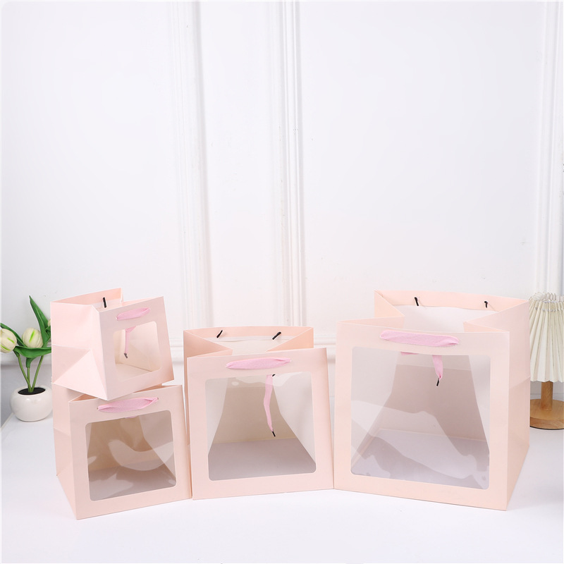 정사각형 선물 가방 창문이 있는 손잡이 선물 가방 투명 인형 휴일 선물 가방 스승의 날 선물 포장 가방 도매스토어 가기