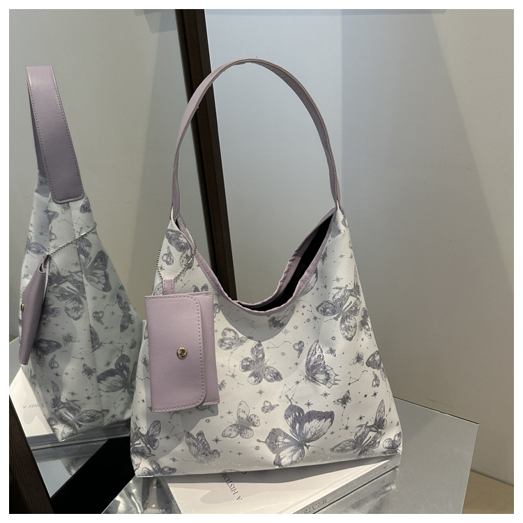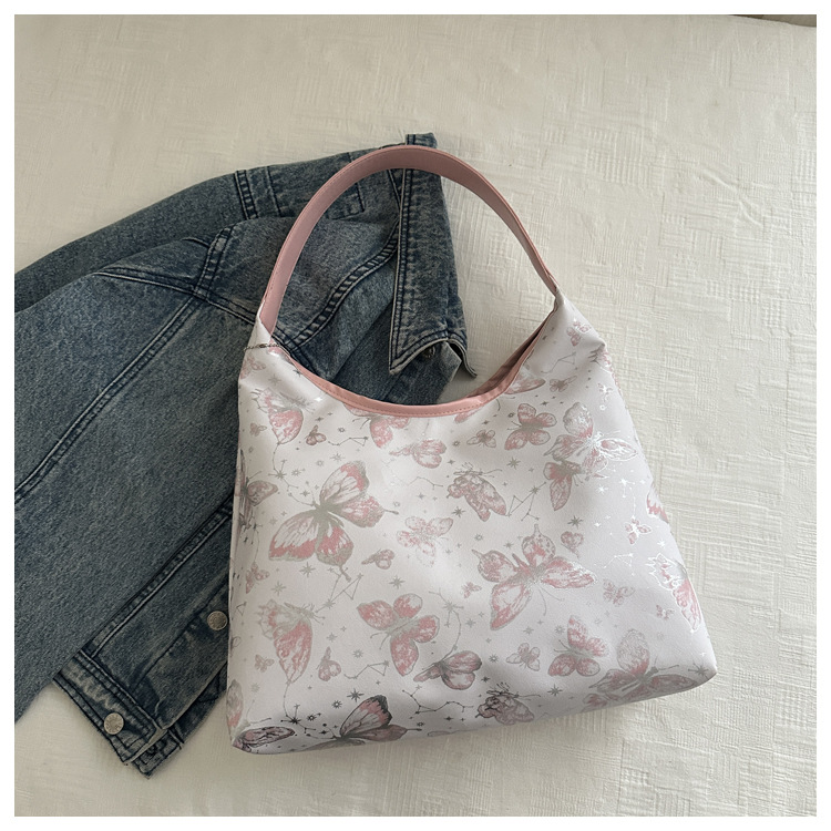 인쇄 된 나비 대용량 여성 2024 여름 독특한 새로운 세련된 캐주얼 통근 토트 숄더 언더암 가방
