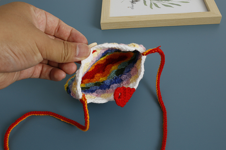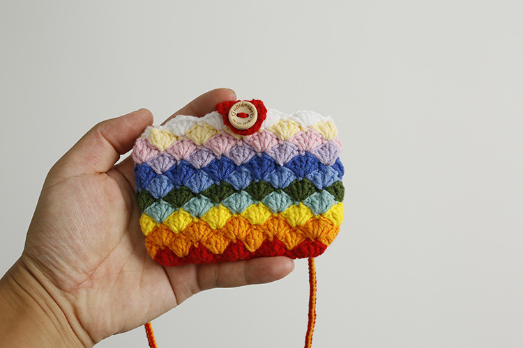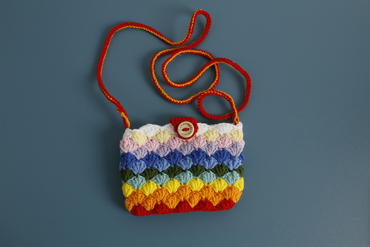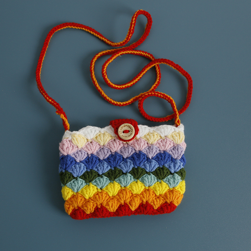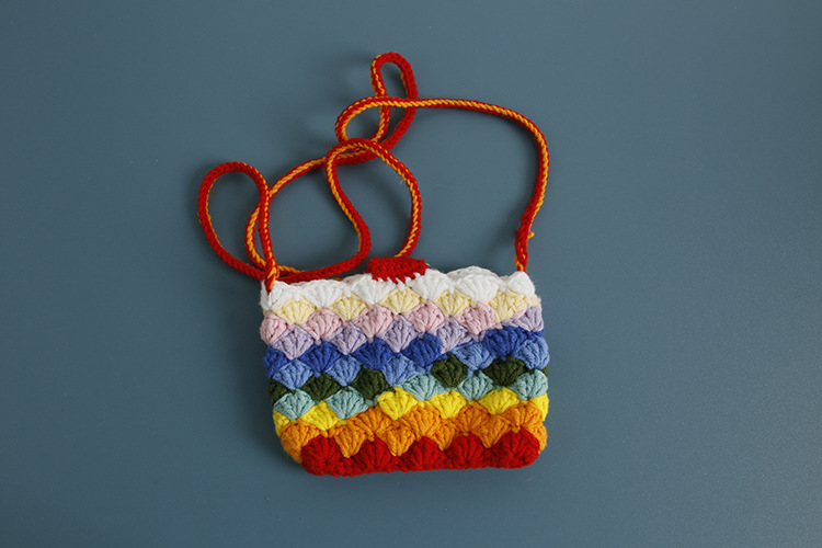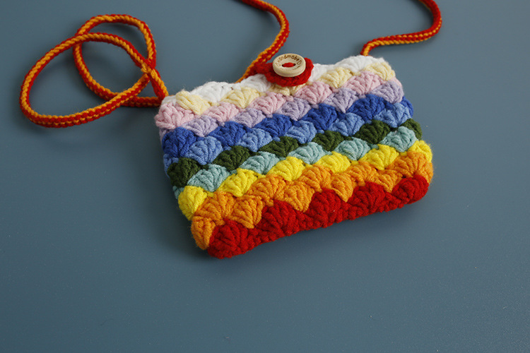 손으로 짠 어린이 크로스 바디 동전 지갑 무지개 색 양모 뜨개질 작은 사각형 가방은 버스 카드 가방으로 만들 수 있습니다.스토어 가기