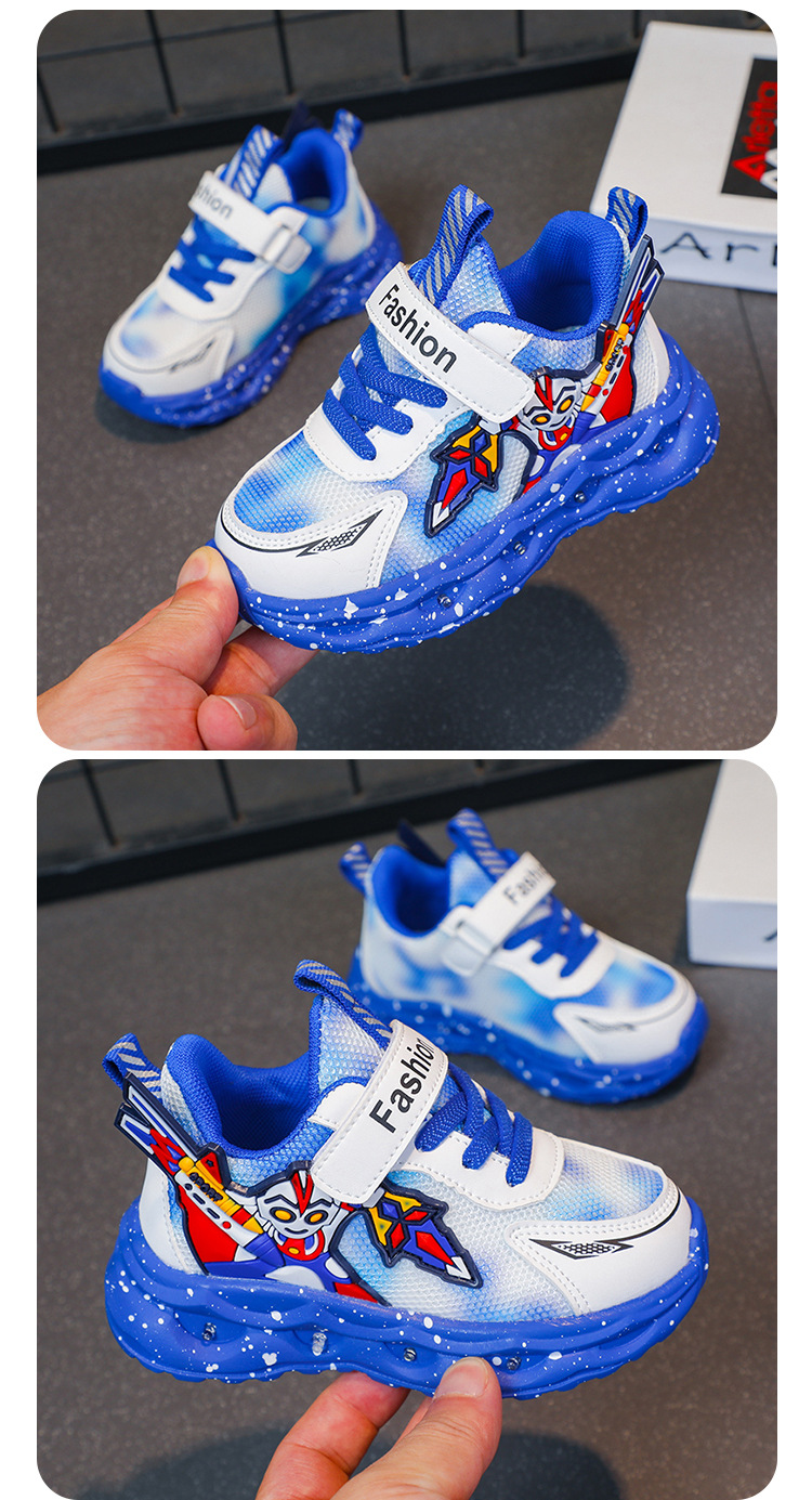 어린이 운동화 봄 가을 모델, 라이트가 있는 만화 캐릭터 이중 메쉬 어린이 캐주얼 신발, 여자 아기 신발 도매