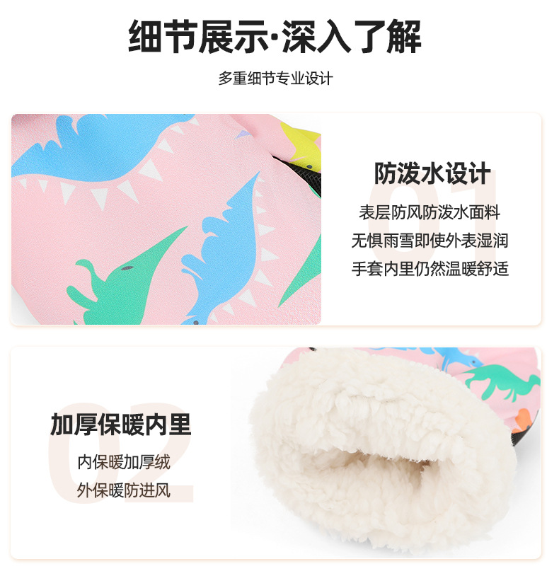 공장 직접 공급 유럽과 미국 국경 새로운 공룡 어린이 겨울 미끄럼 방지 따뜻한 스키 방수 야외 장갑스토어 가기