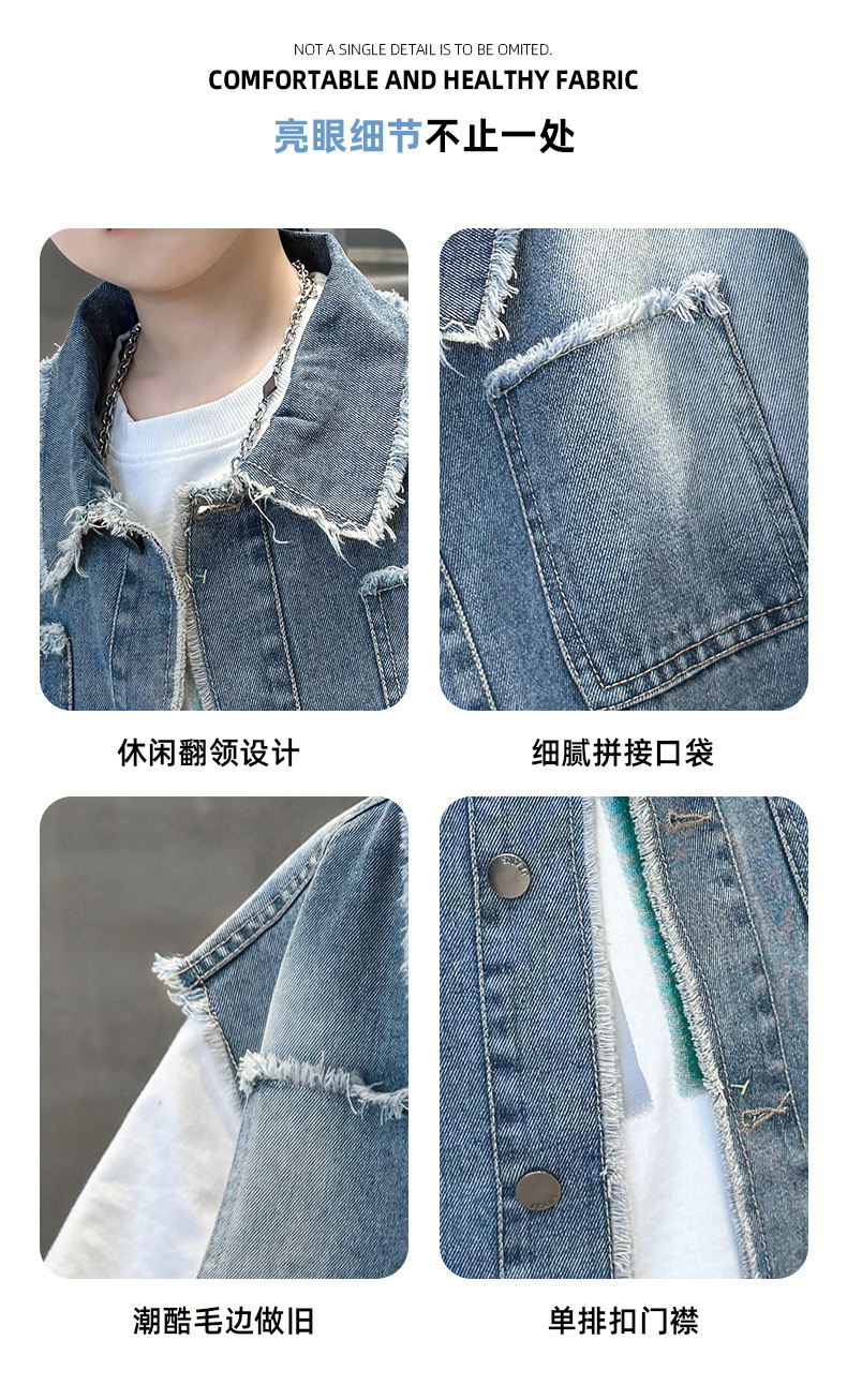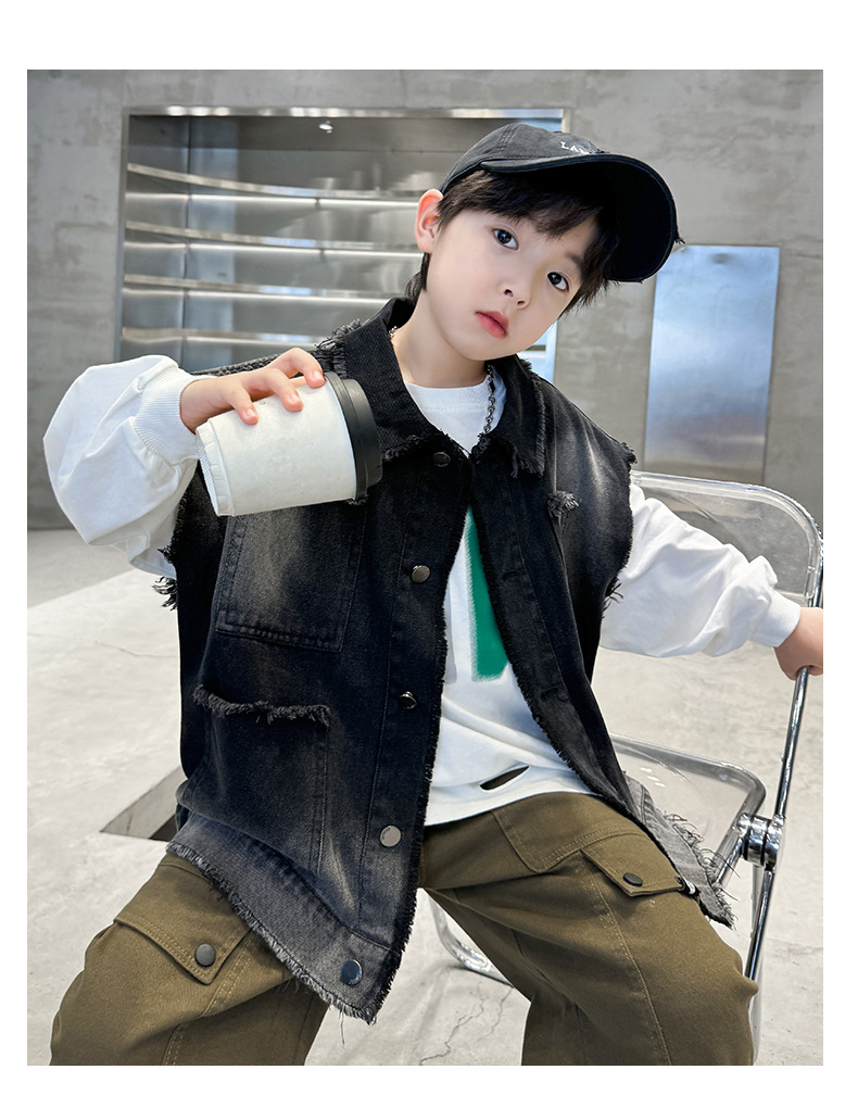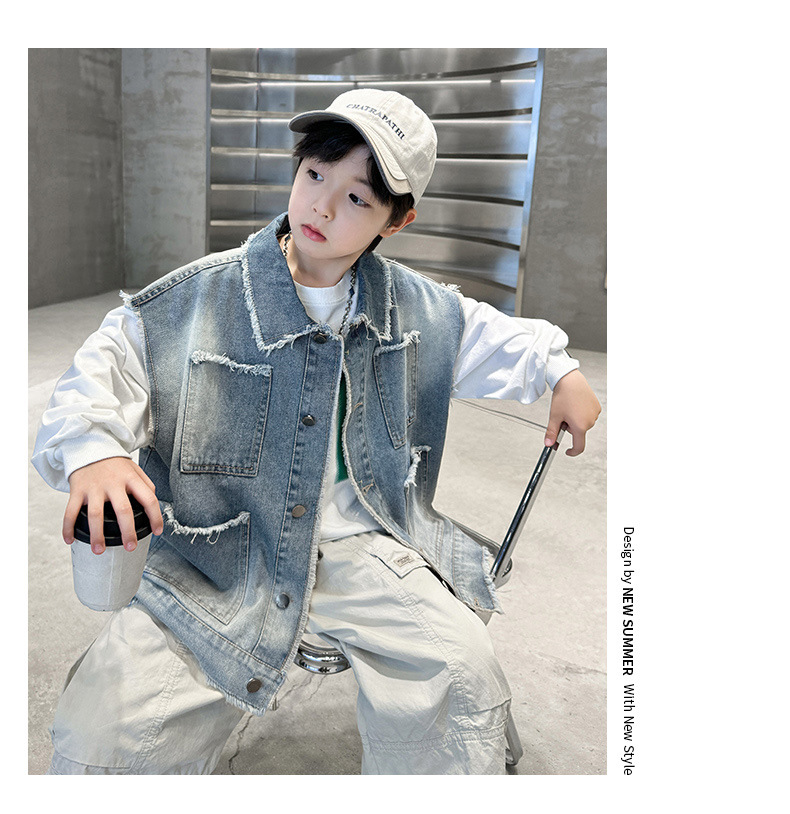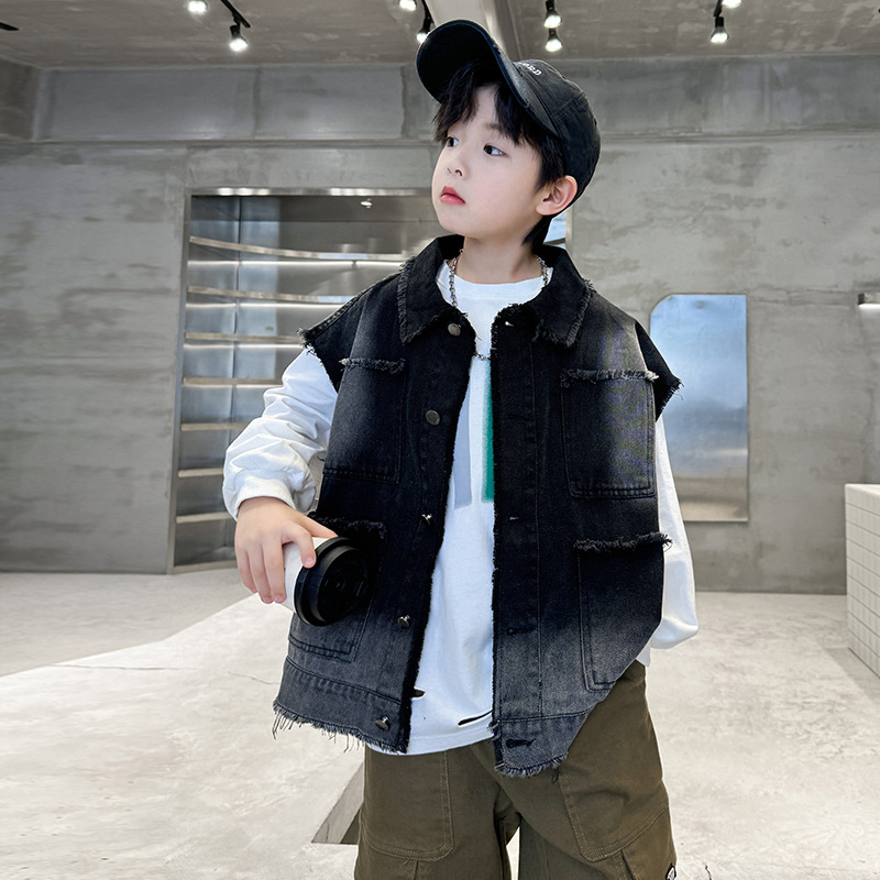 아동복 어린이 데님 조끼 재킷 2024 새로운 스타일 중 · 빅 보이즈 잘 생긴 올매치 웨이스트코트 타이드 조끼스토어 가기