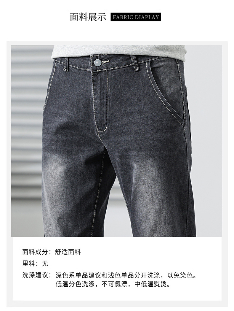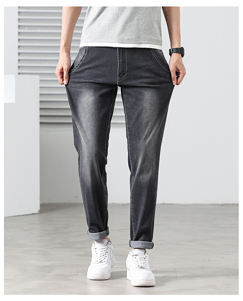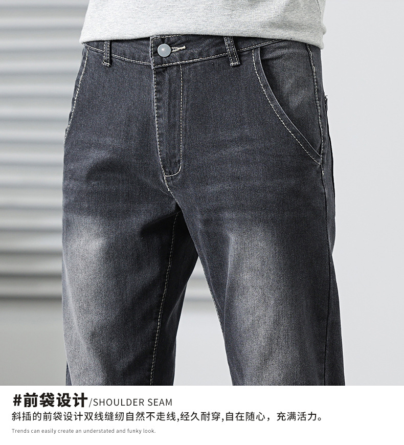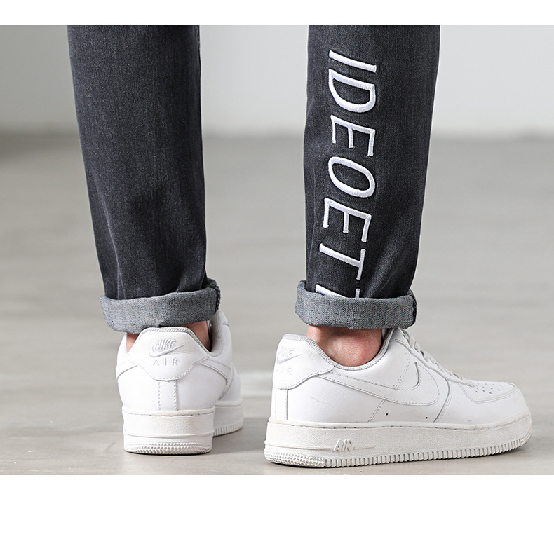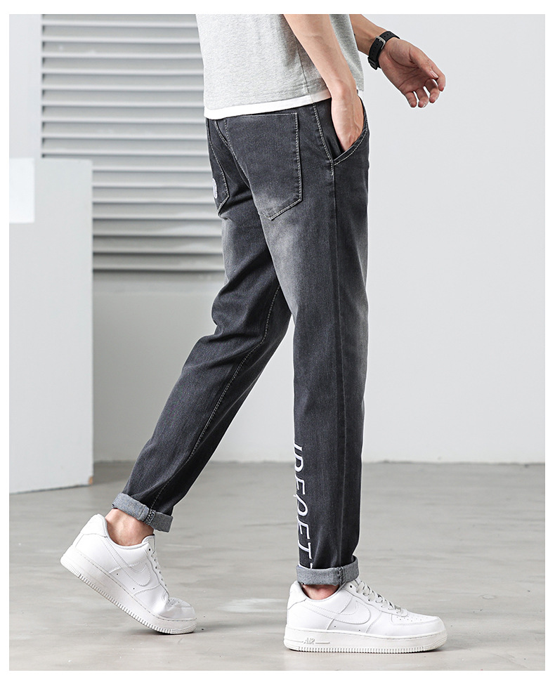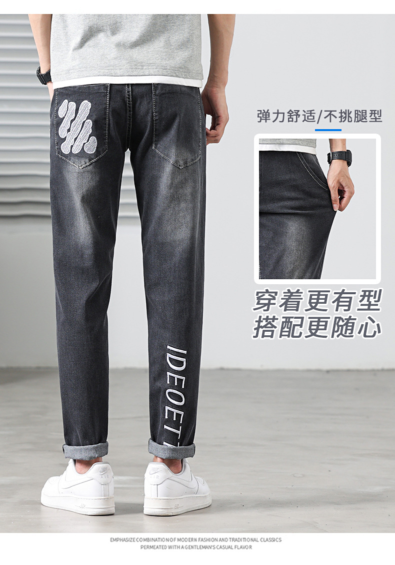 가을 유행 브랜드 레트로 청바지 남성용 슬림 핏 프린트 스트레치 아메리칸 스타일 하이 엔드 트렌디 블랙 그레이 캐주얼 바지스토어 가기