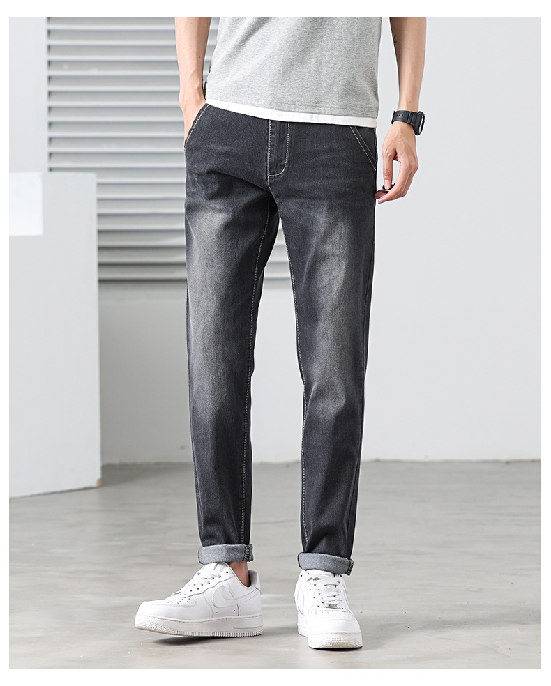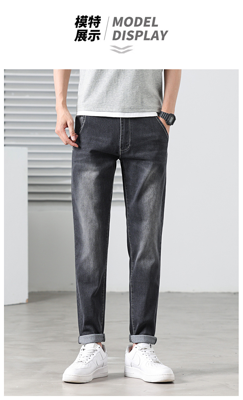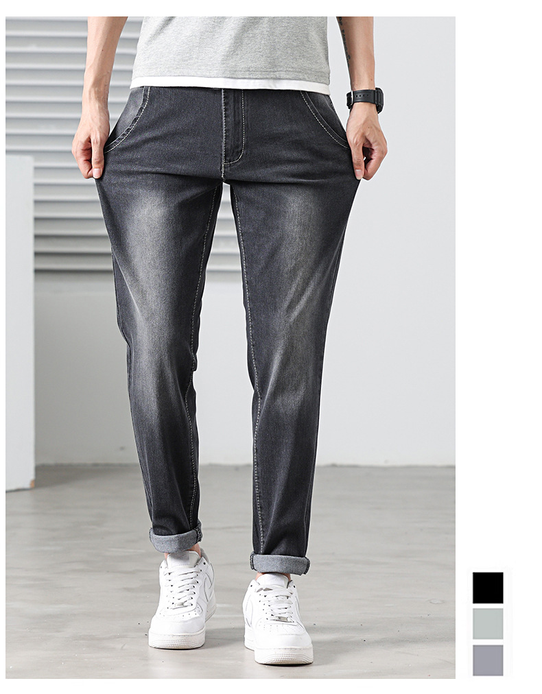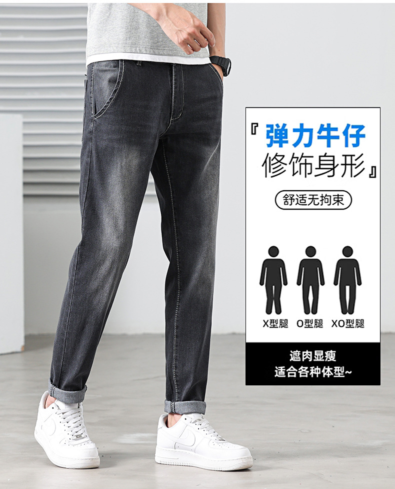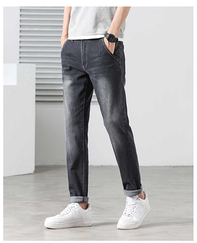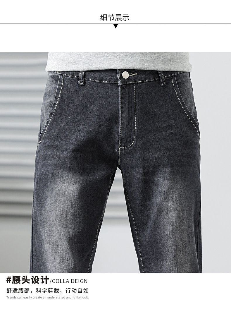 가을 유행 브랜드 레트로 청바지 남성용 슬림 핏 프린트 스트레치 아메리칸 스타일 하이 엔드 트렌디 블랙 그레이 캐주얼 바지스토어 가기