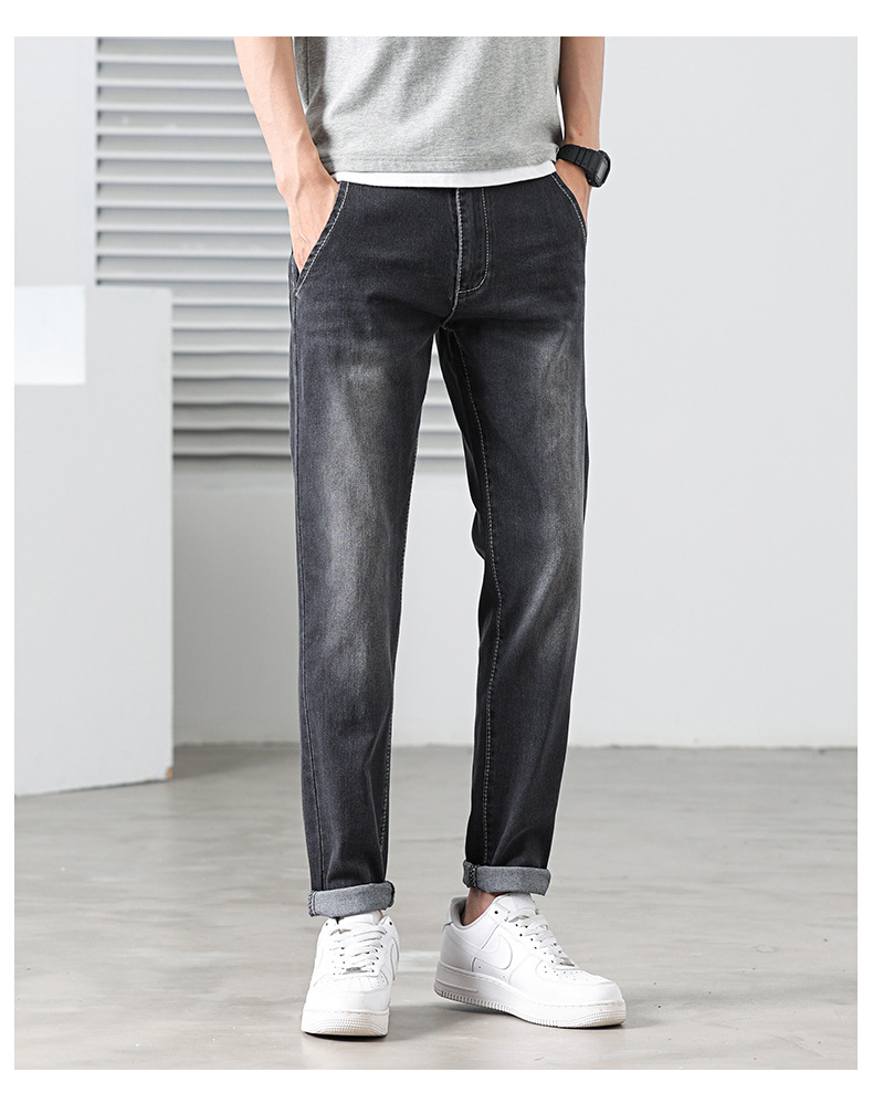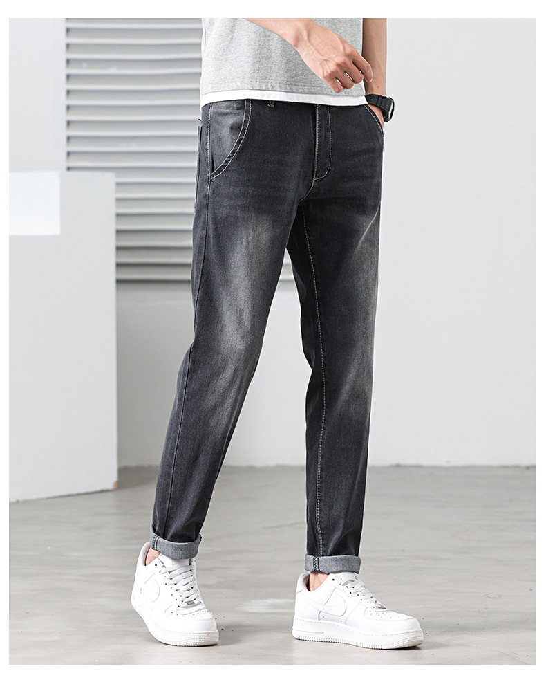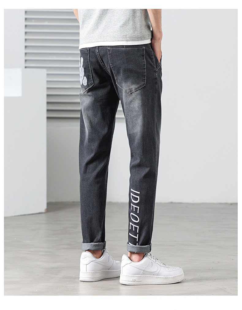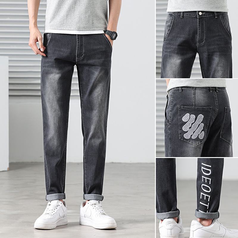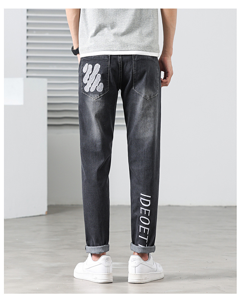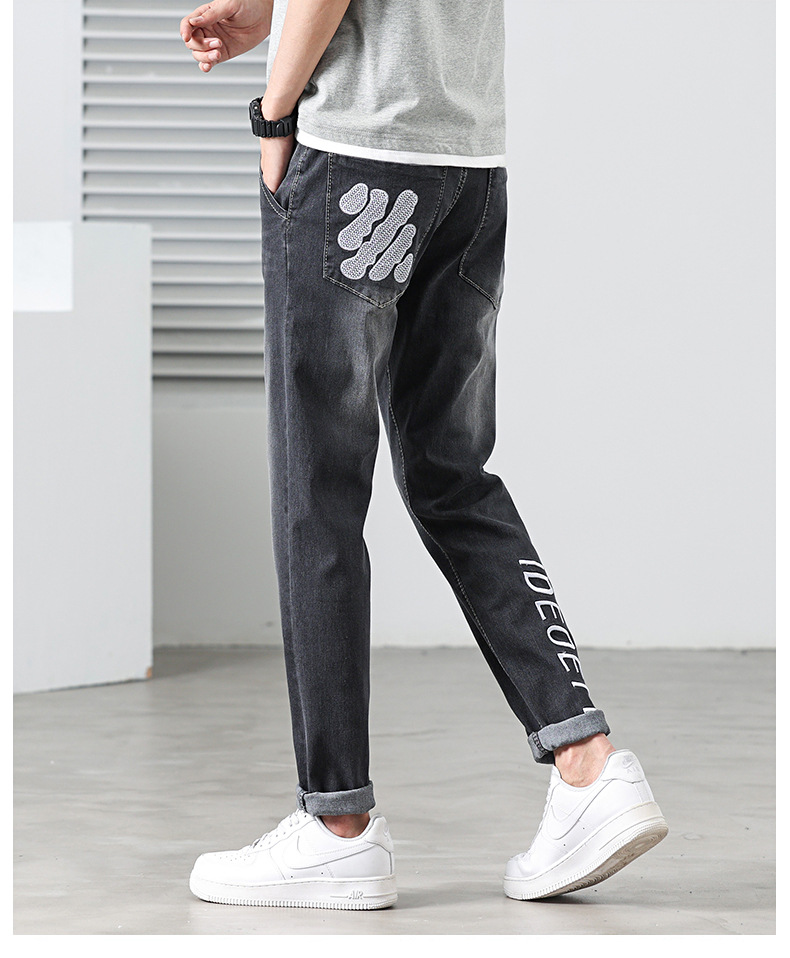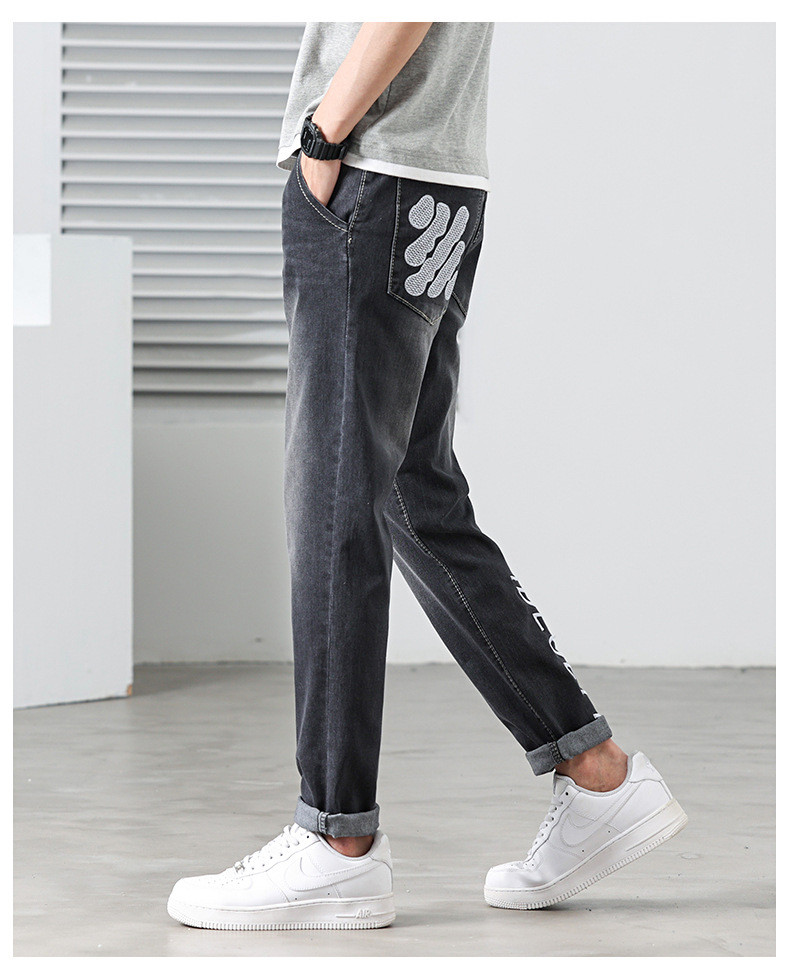 가을 유행 브랜드 레트로 청바지 남성용 슬림 핏 프린트 스트레치 아메리칸 스타일 하이 엔드 트렌디 블랙 그레이 캐주얼 바지