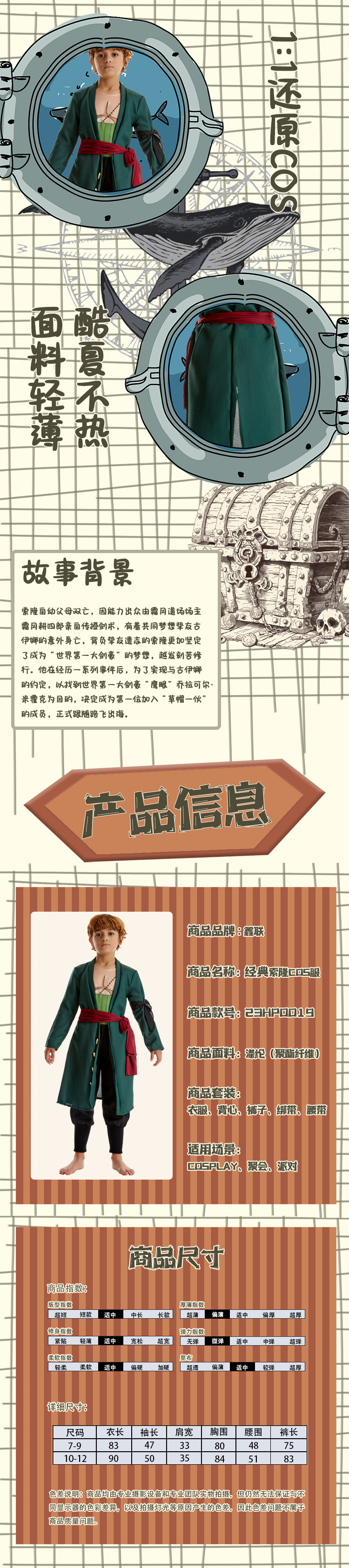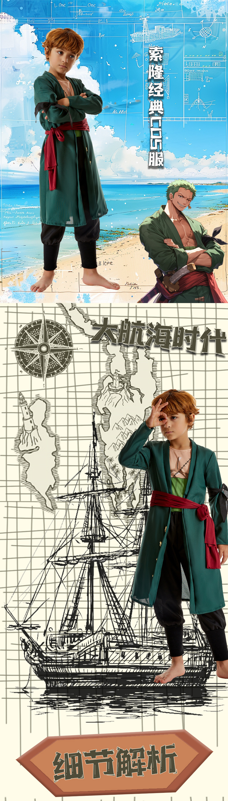 원피스 Suolongzoro cos 세트 클래식 어린이 남성 애니메이션 코스프레 세트 C 세트 조로스토어 가기