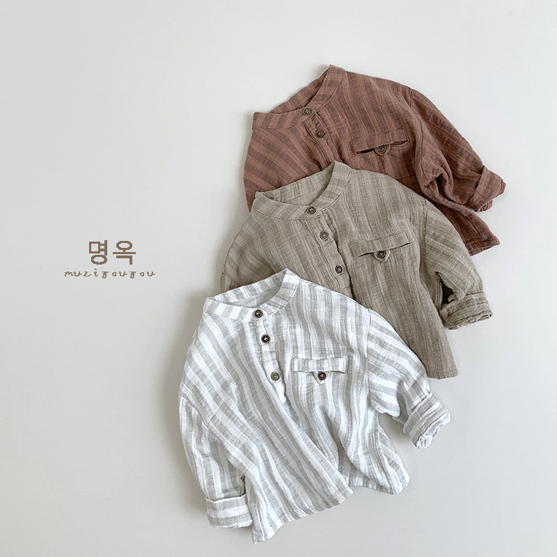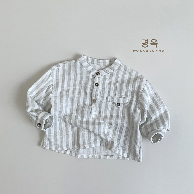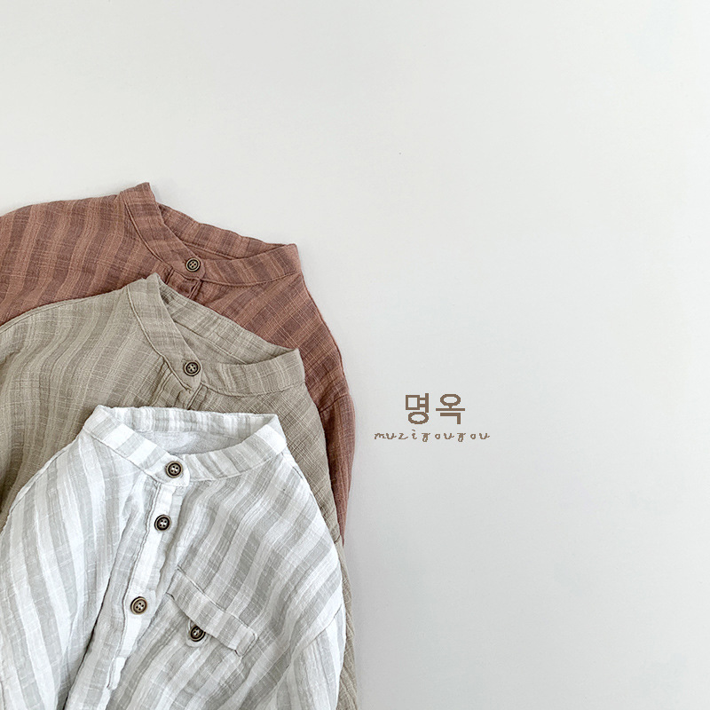 일본풍~ 아동용 심플 세로 스트라이프 셔츠 2026 남아 여아 한국 스타일 캐주얼 만능 티셔츠 유아동 트렌디 아동복스토어 가기