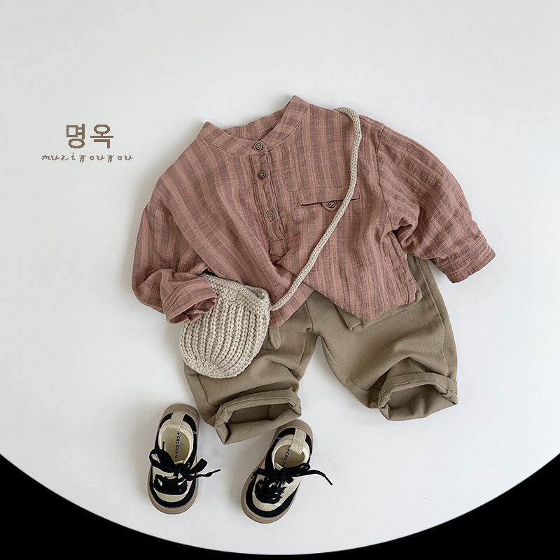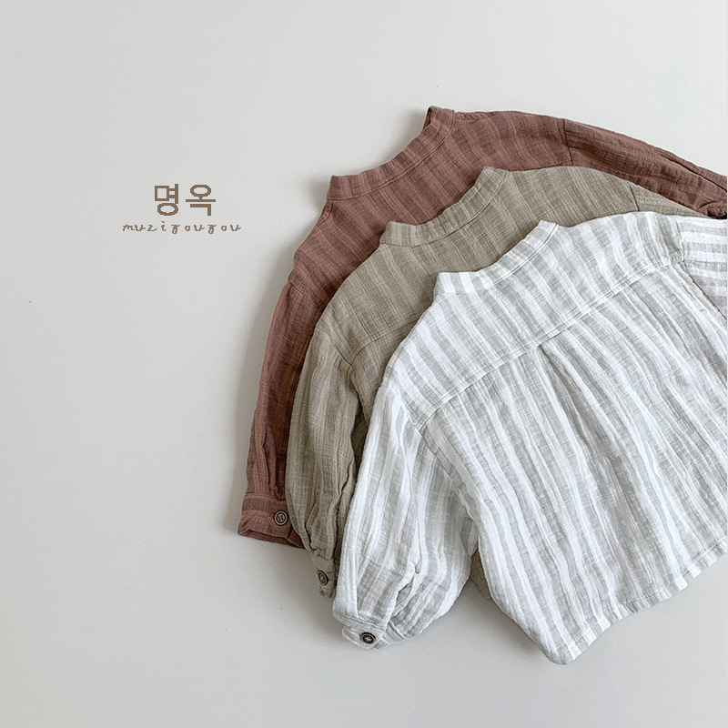 일본풍~ 아동용 심플 세로 스트라이프 셔츠 2026 남아 여아 한국 스타일 캐주얼 만능 티셔츠 유아동 트렌디 아동복