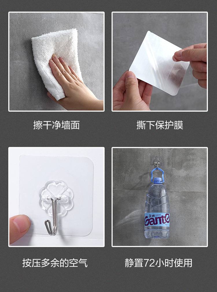 투명한 추적없는 후크 주방 및 욕실 투명한 접착 후크 비 펀치 다기능 타월 후크 투명 후크