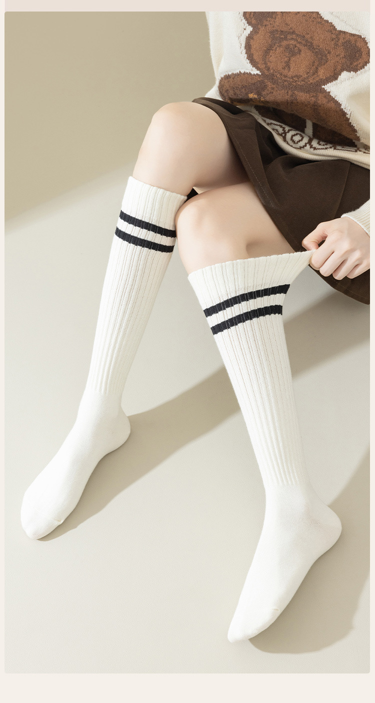 어린이 송아지 양말 가을과 겨울 흰색 그물 붉은 면화 양말 줄무늬 더미 양말 여성 두꺼운 스타킹 Zhuji 도매스토어 가기