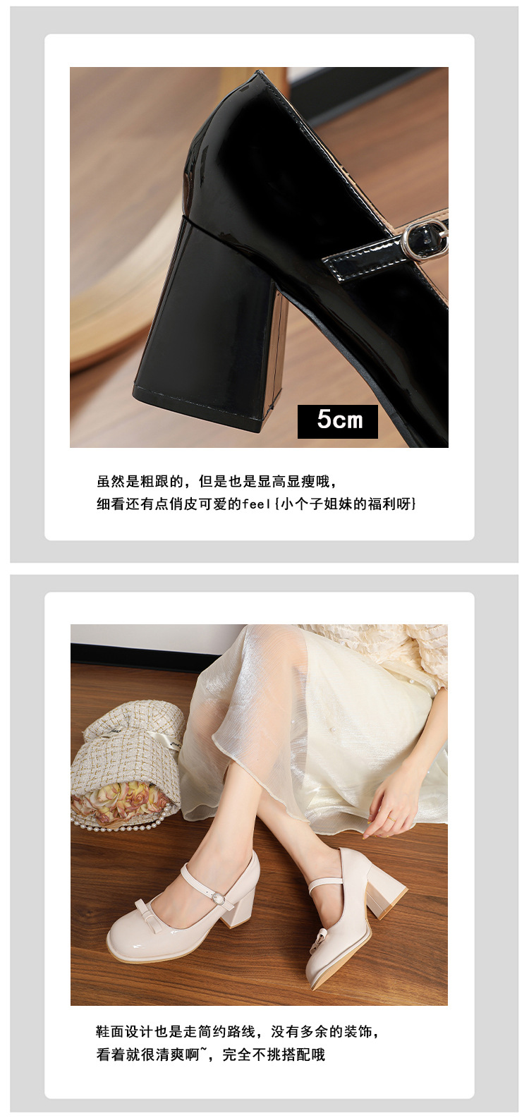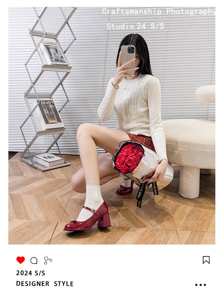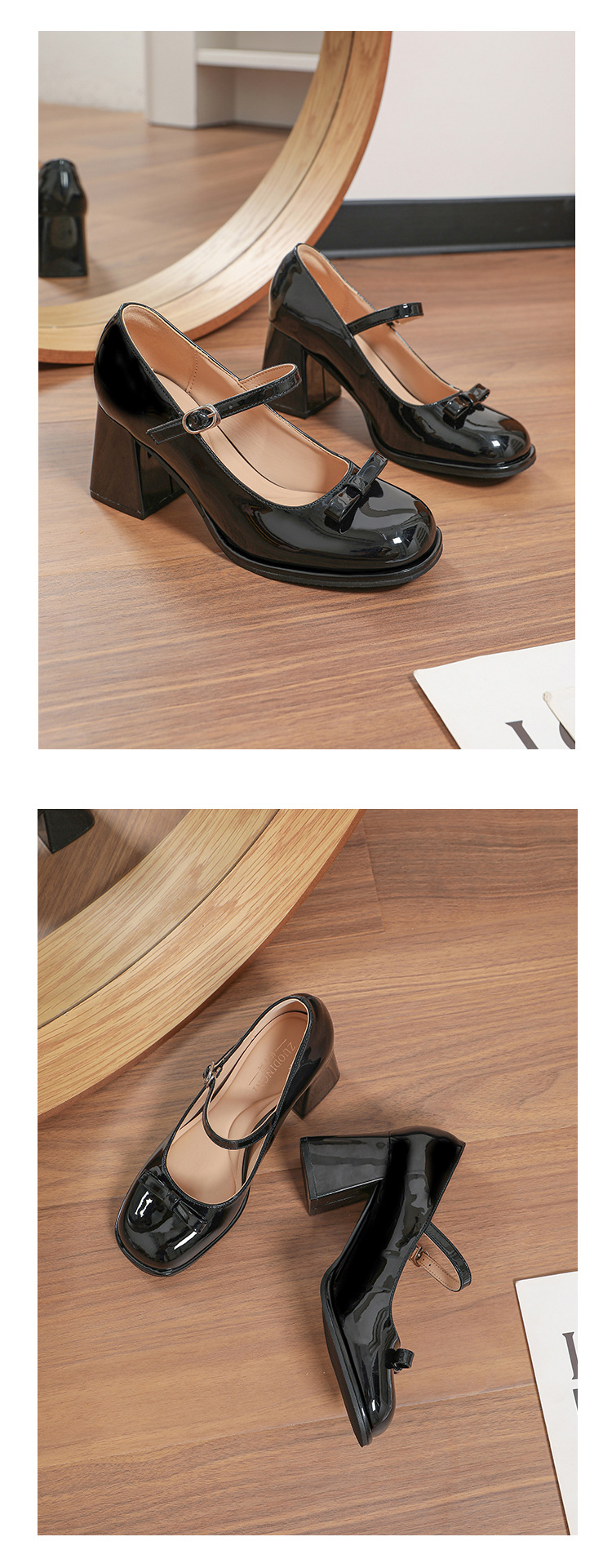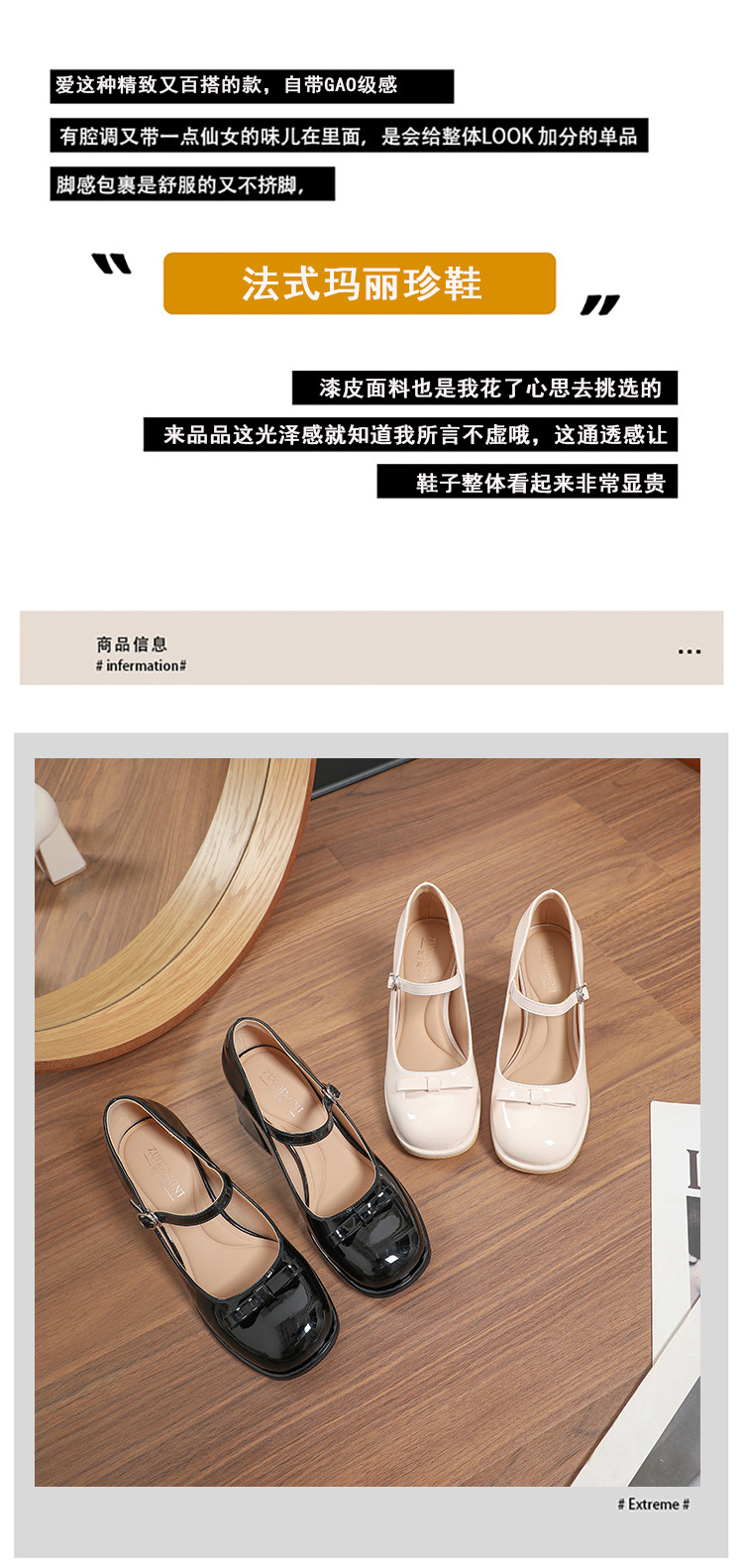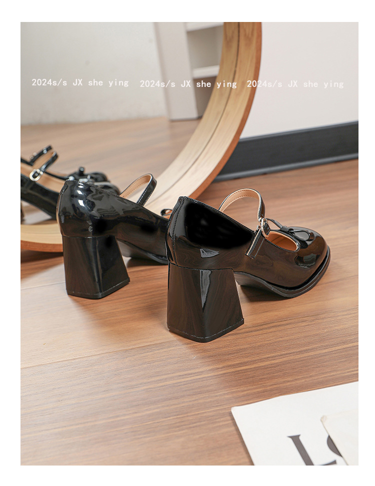 MZ-8 프랑스 메리 제인 신발 달콤한 새 플러스 사이즈 특허 가죽 요정 스타일 두꺼운 뒤꿈치 신발 통통한 발 넓은 발 43 44스토어 가기