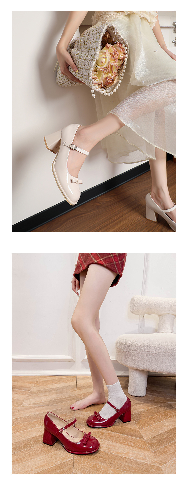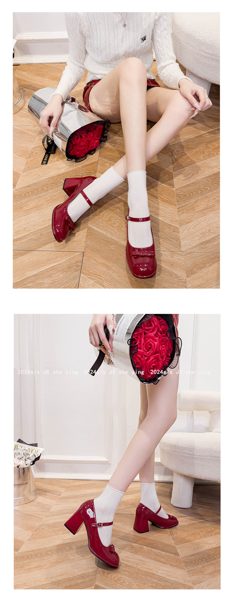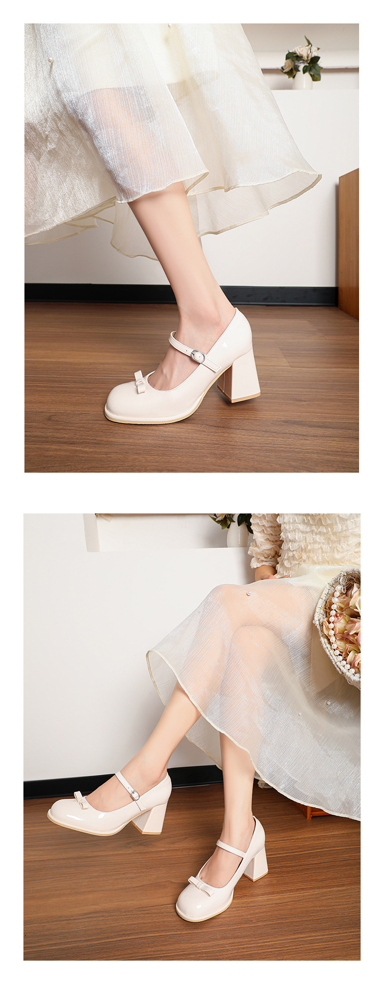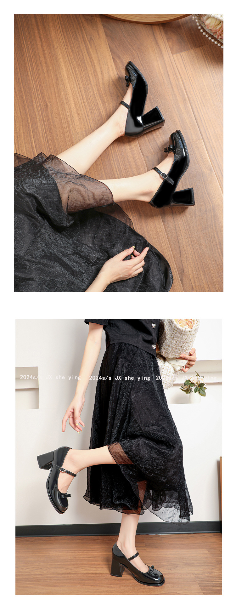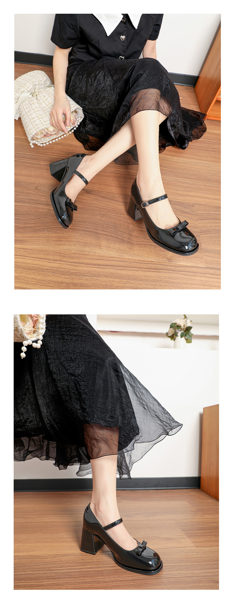 MZ-8 프랑스 메리 제인 신발 달콤한 새 플러스 사이즈 특허 가죽 요정 스타일 두꺼운 뒤꿈치 신발 통통한 발 넓은 발 43 44스토어 가기