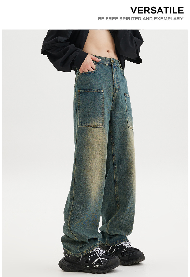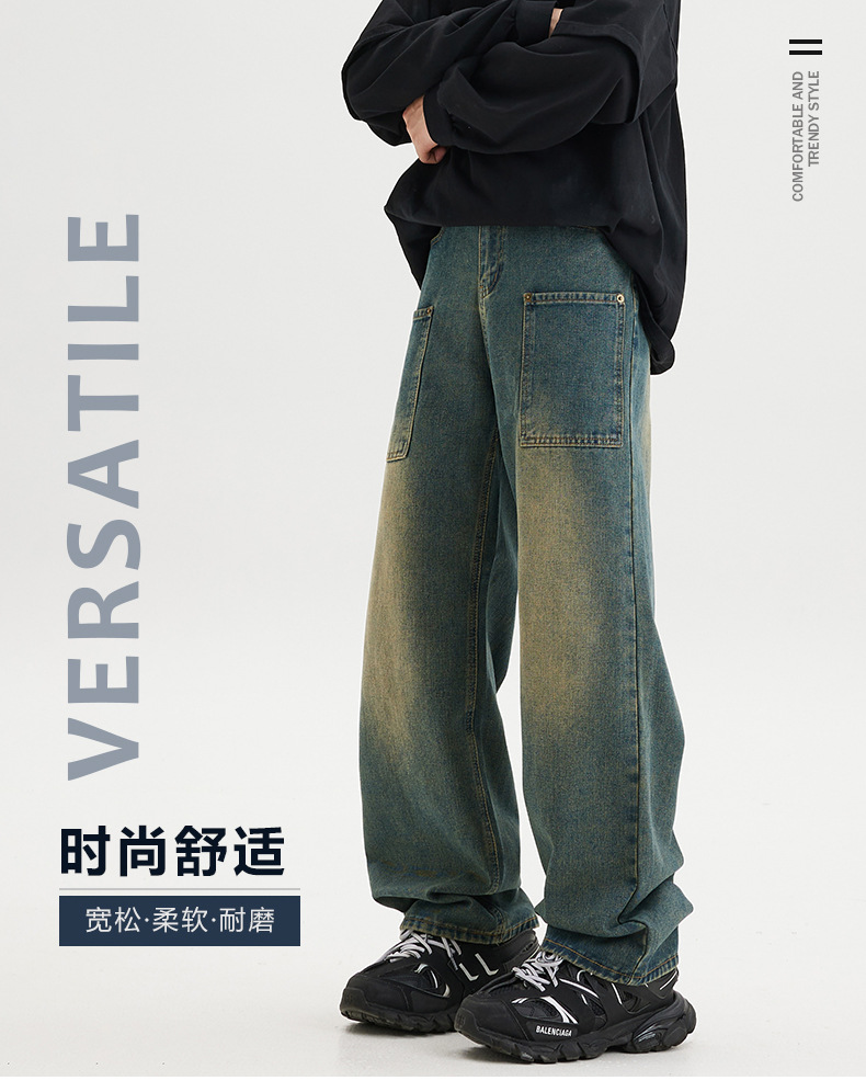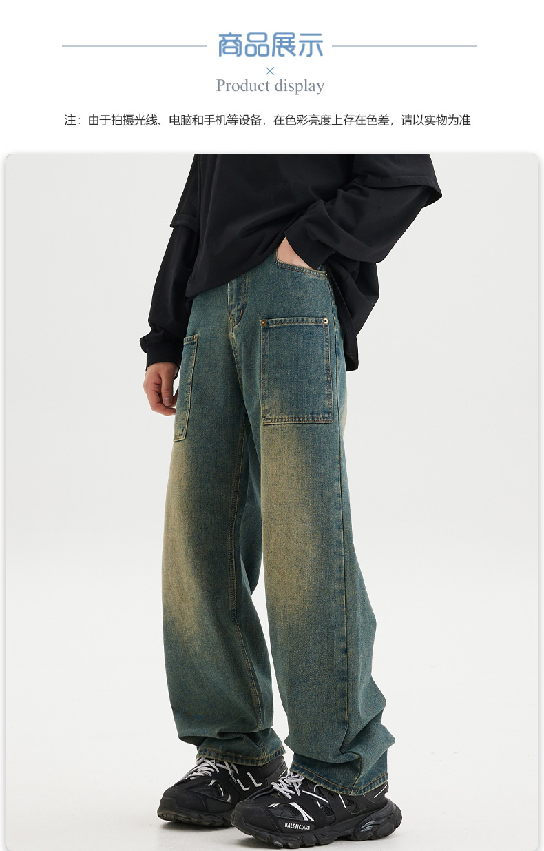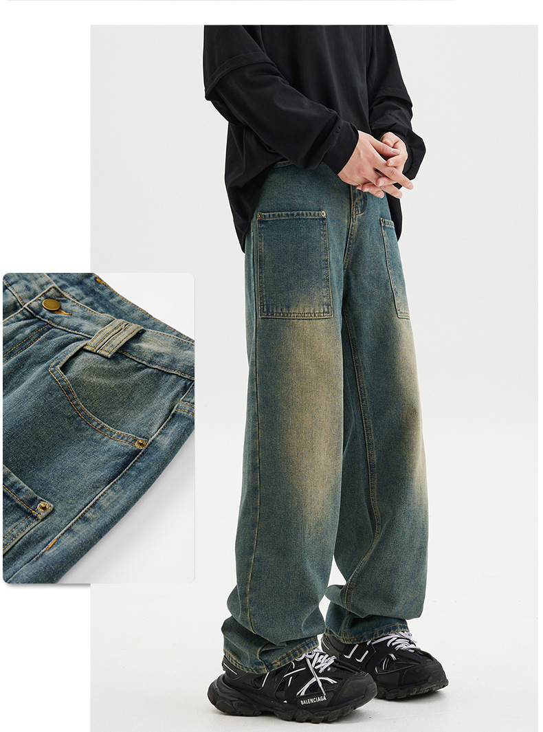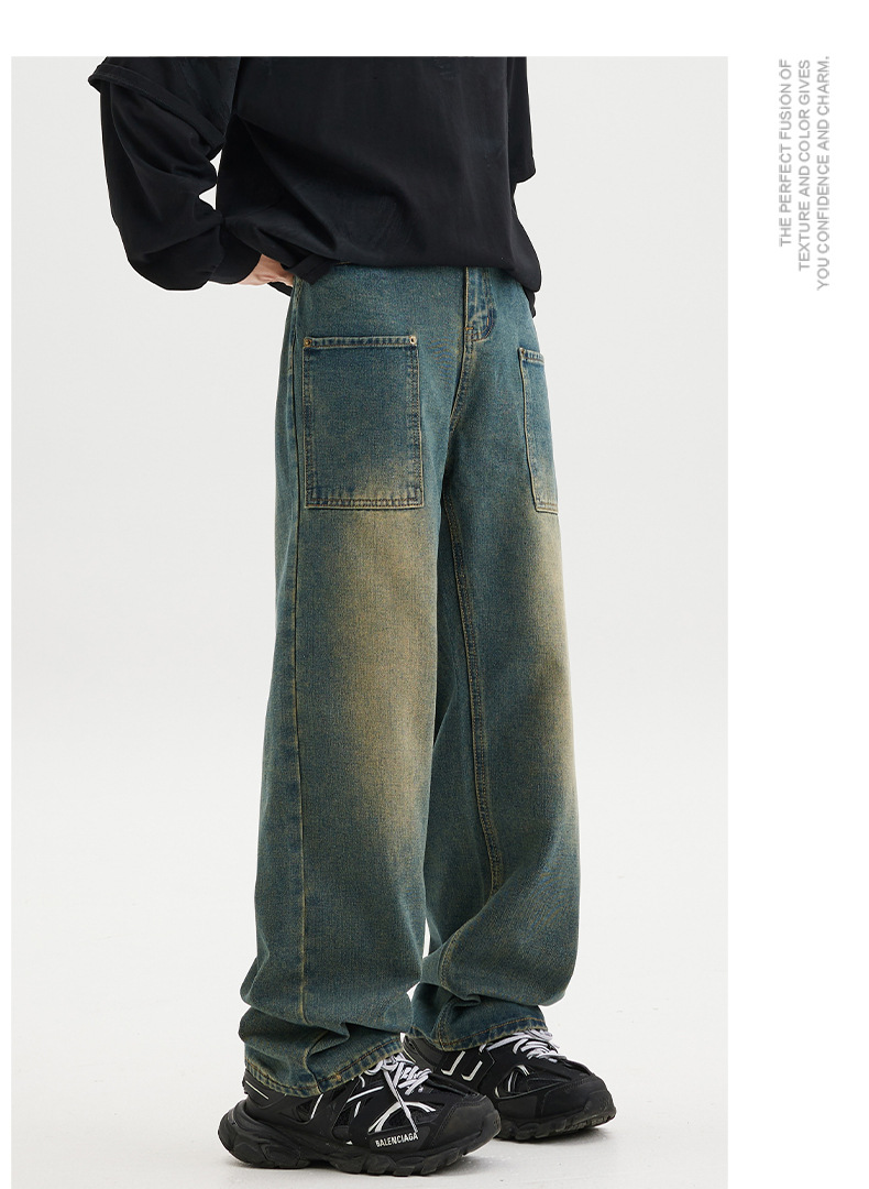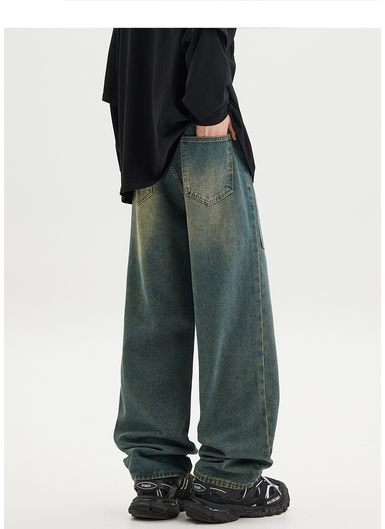 무거운 미국 스타일 바지 남자 봄과 가을 씻은 올드 스타일 빈티지 올 매치 슬리밍 스트레이트 레그 와이드 레그 청바지스토어 가기