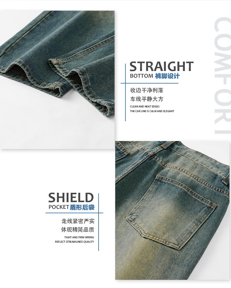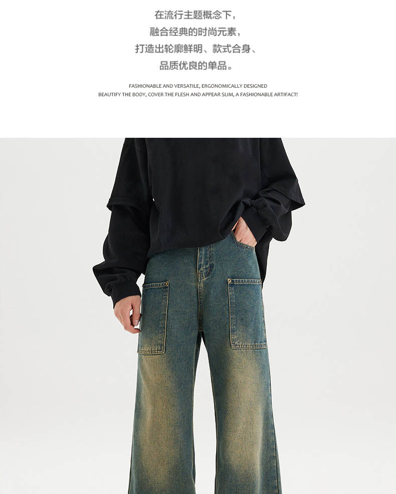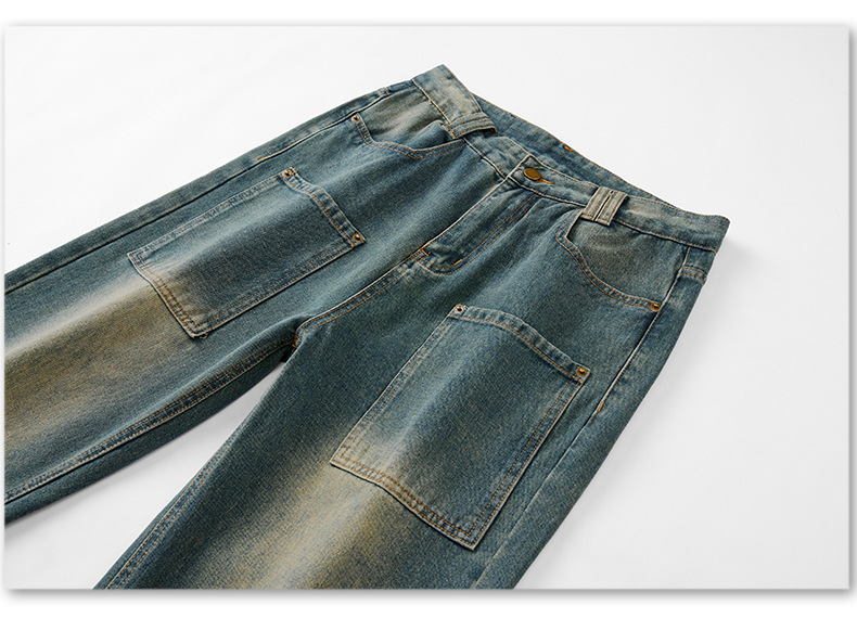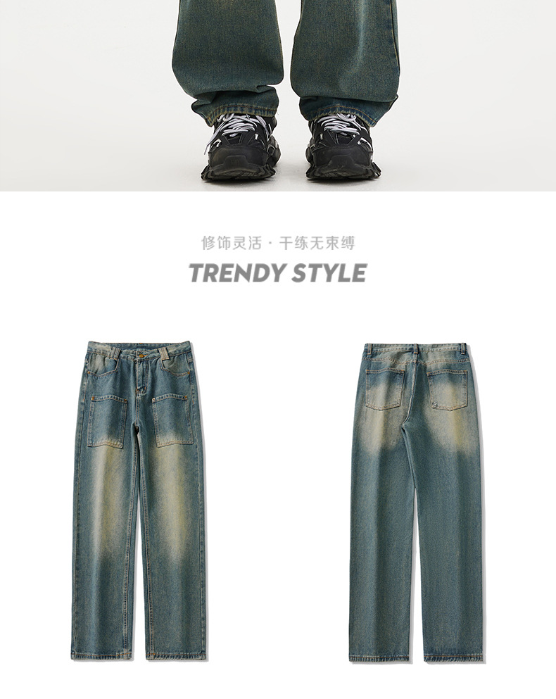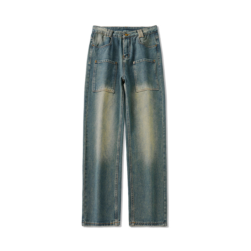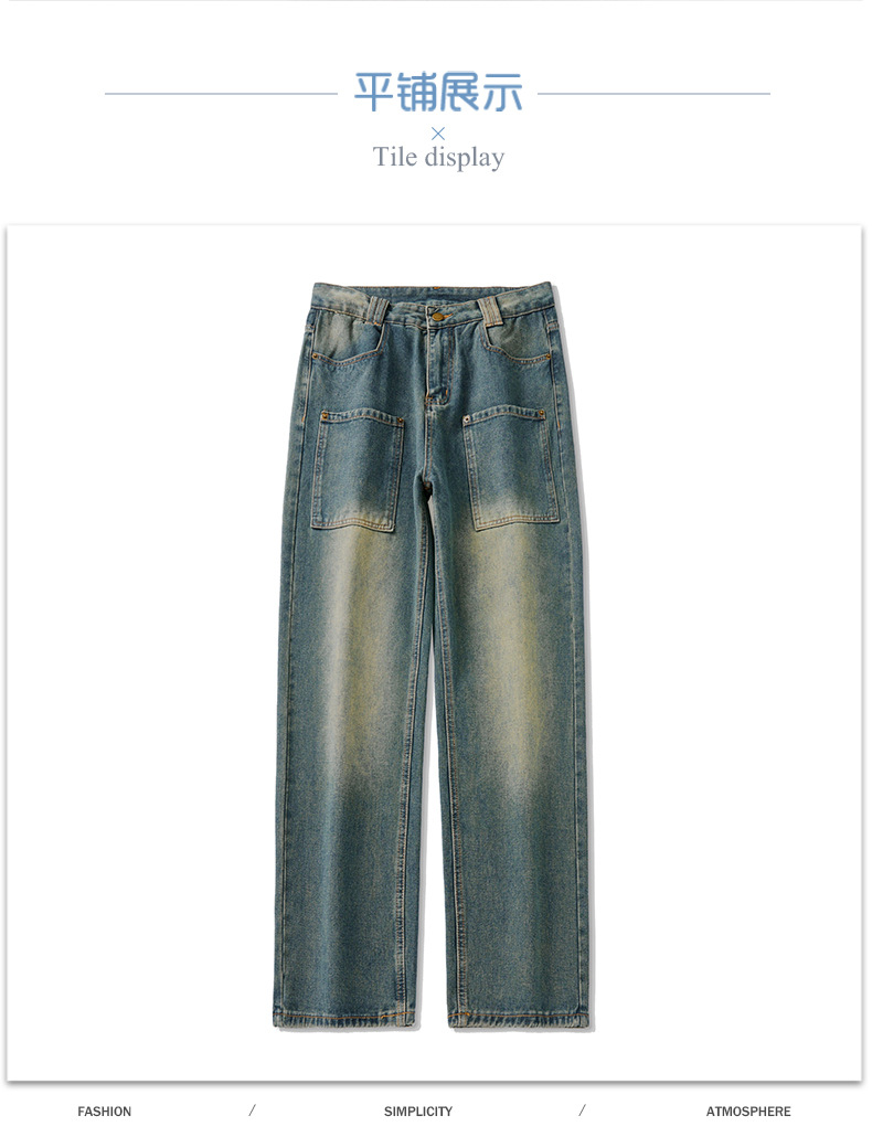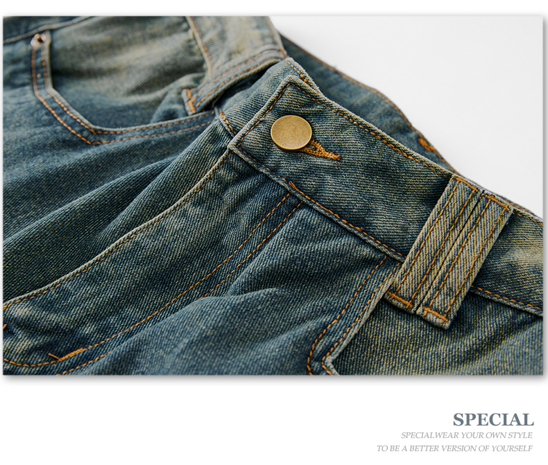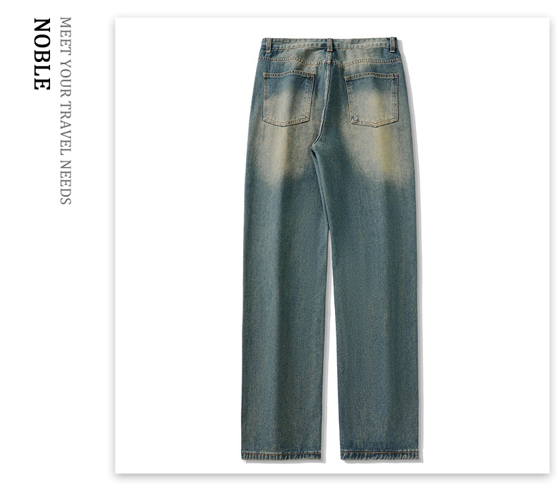무거운 미국 스타일 바지 남자 봄과 가을 씻은 올드 스타일 빈티지 올 매치 슬리밍 스트레이트 레그 와이드 레그 청바지스토어 가기