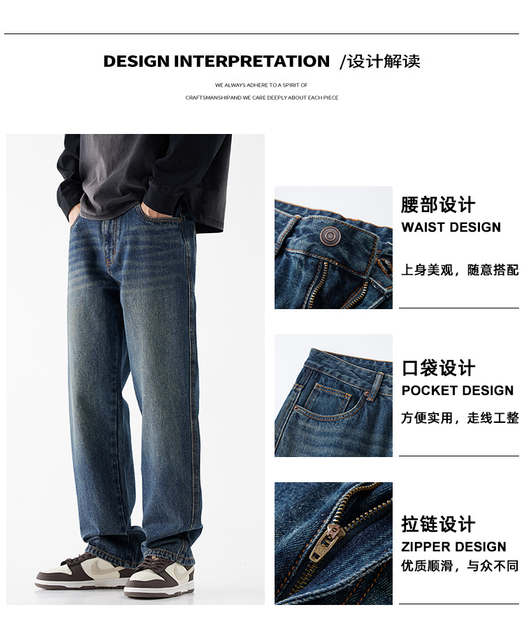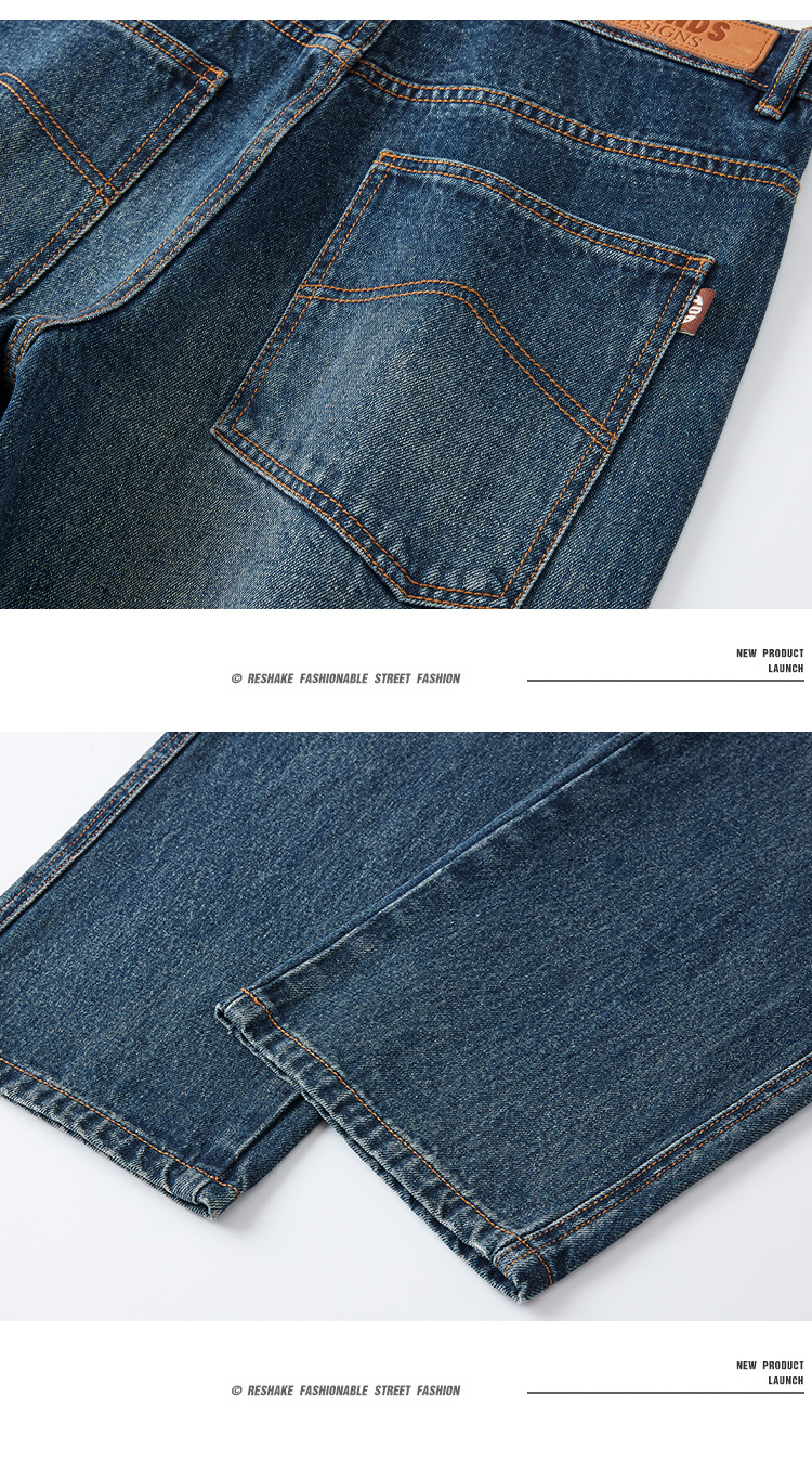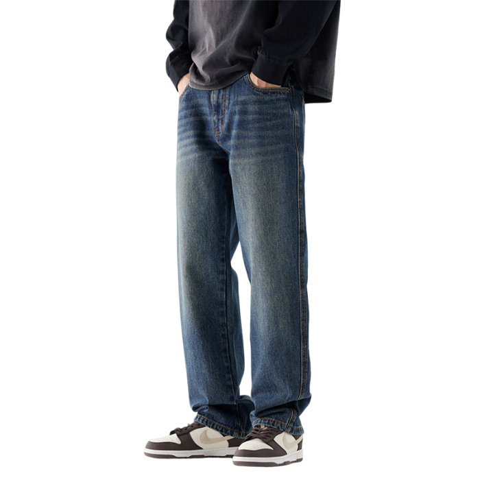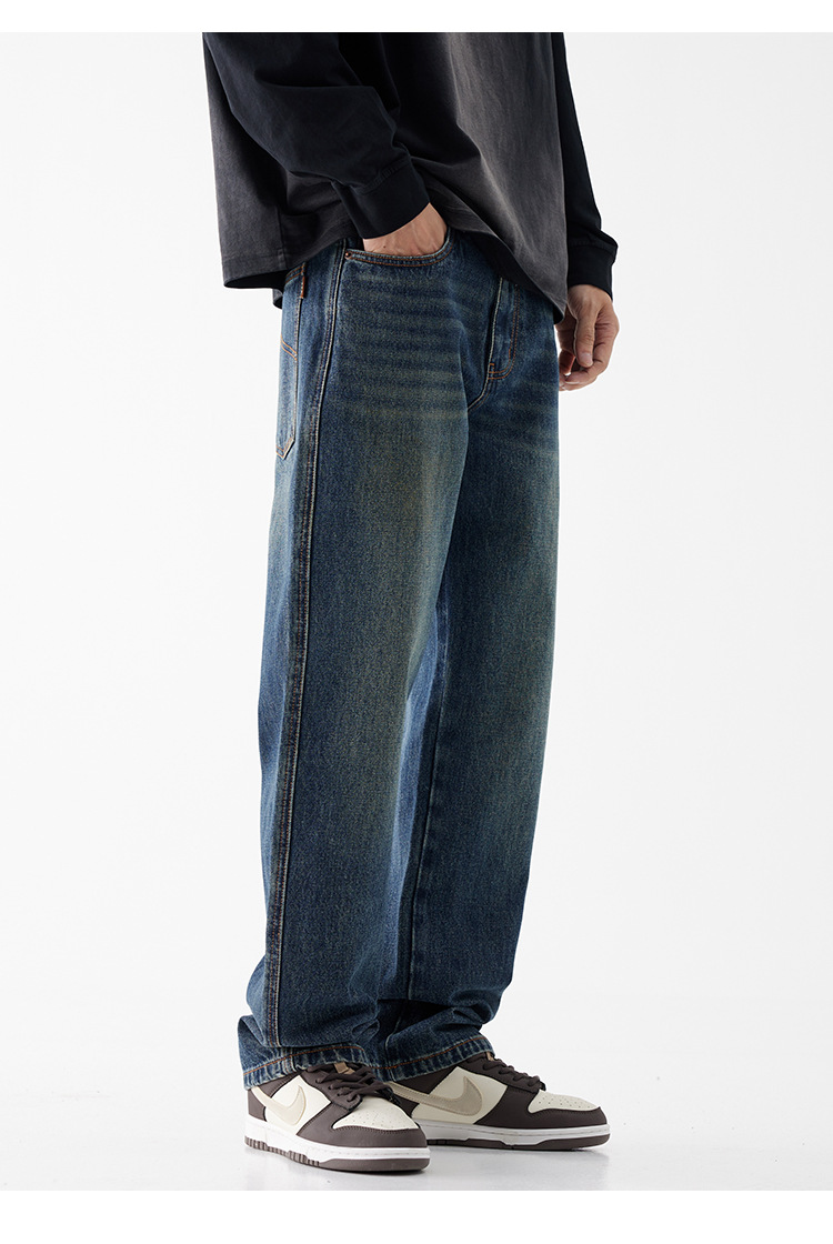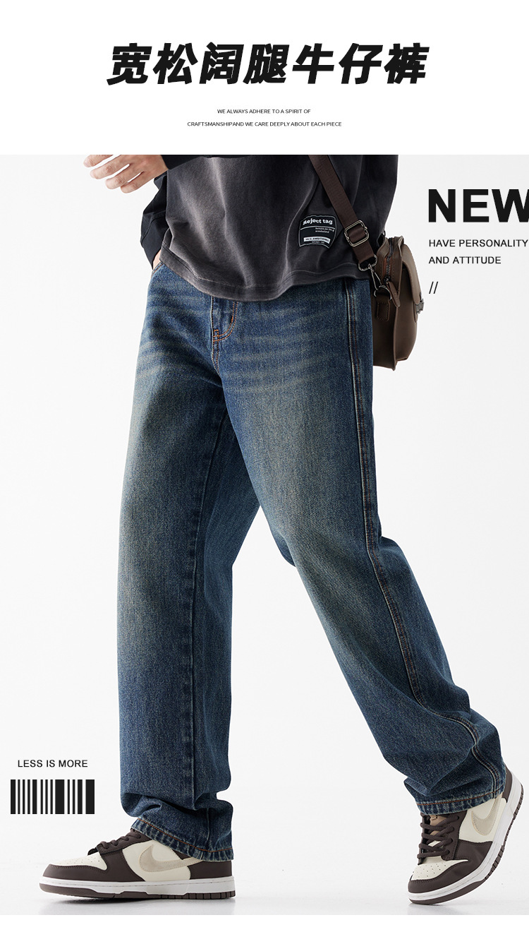 남성용 청바지 가을 뉴 블루 루즈 아메리칸 바이브 바지 남성용 트렌디 브랜드 하이 스트리트 루즈 스트레이트 바지스토어 가기