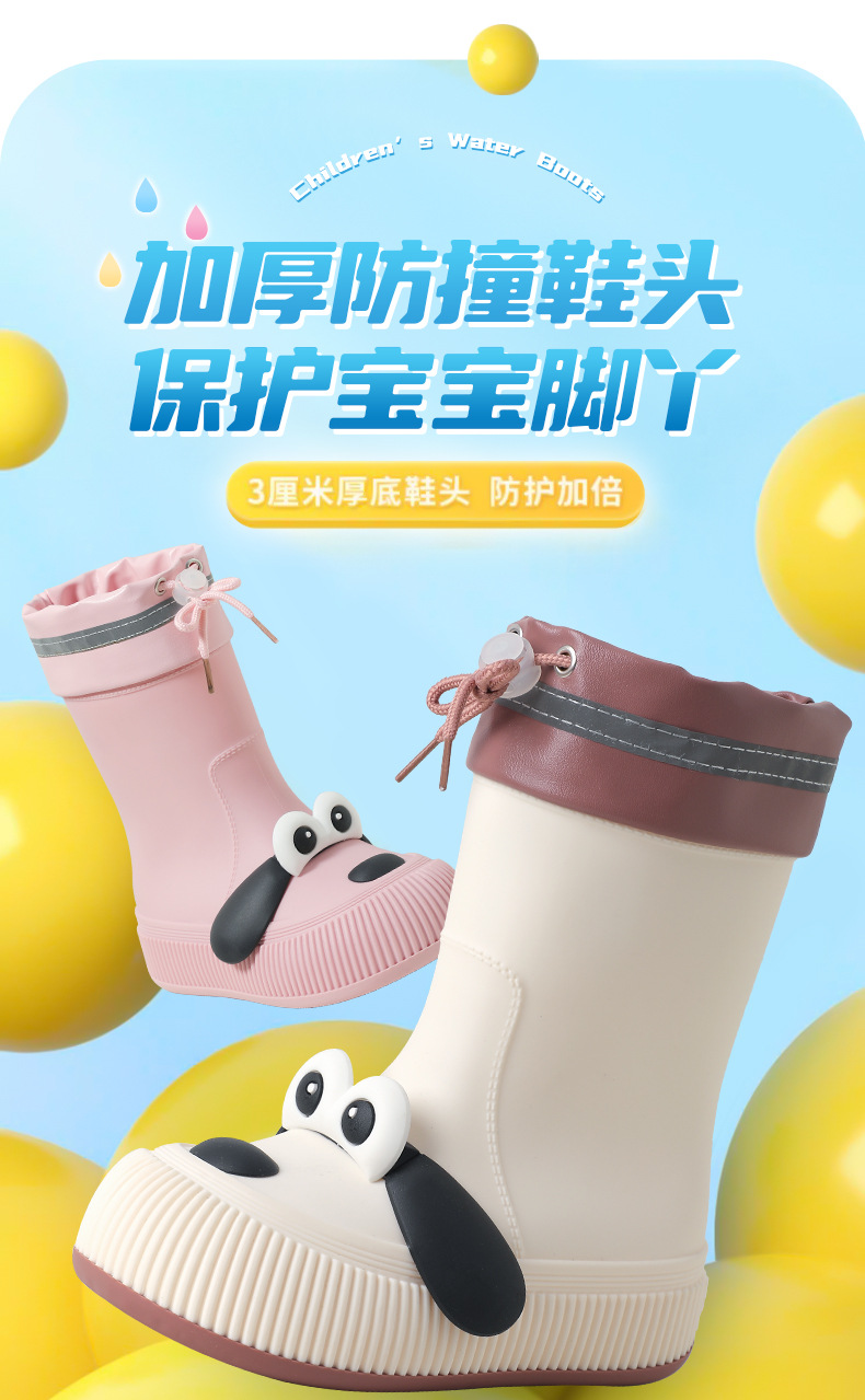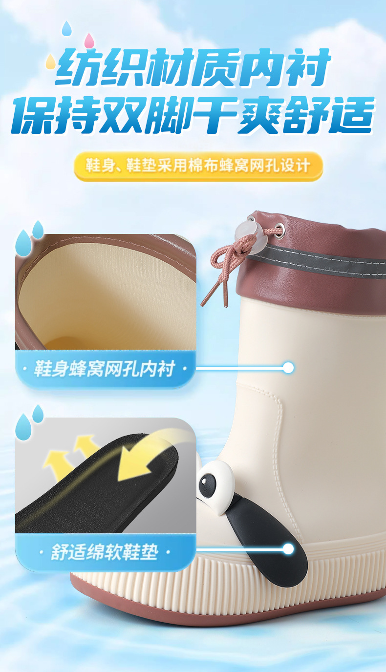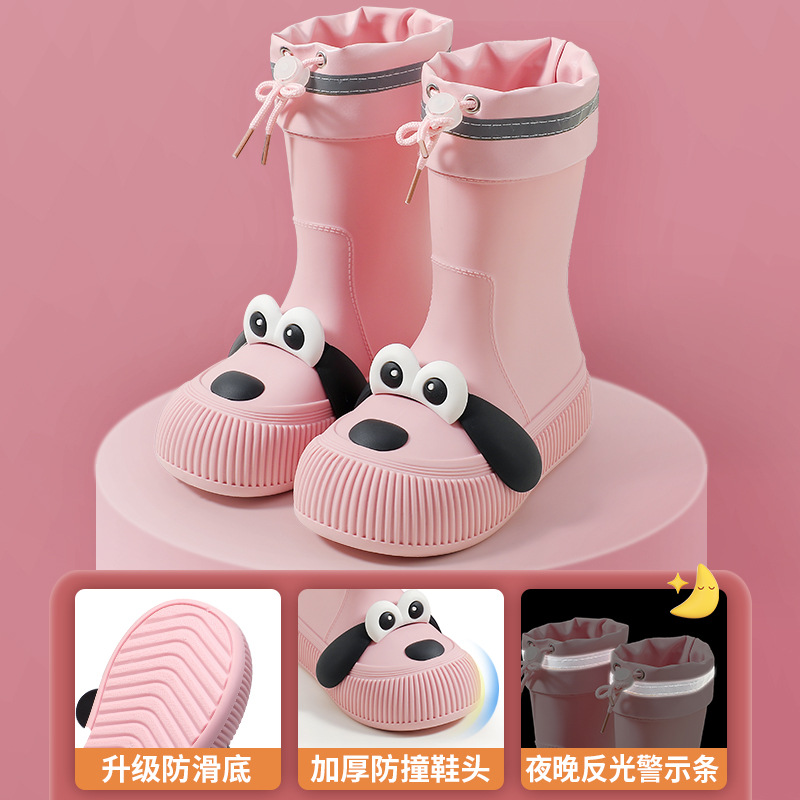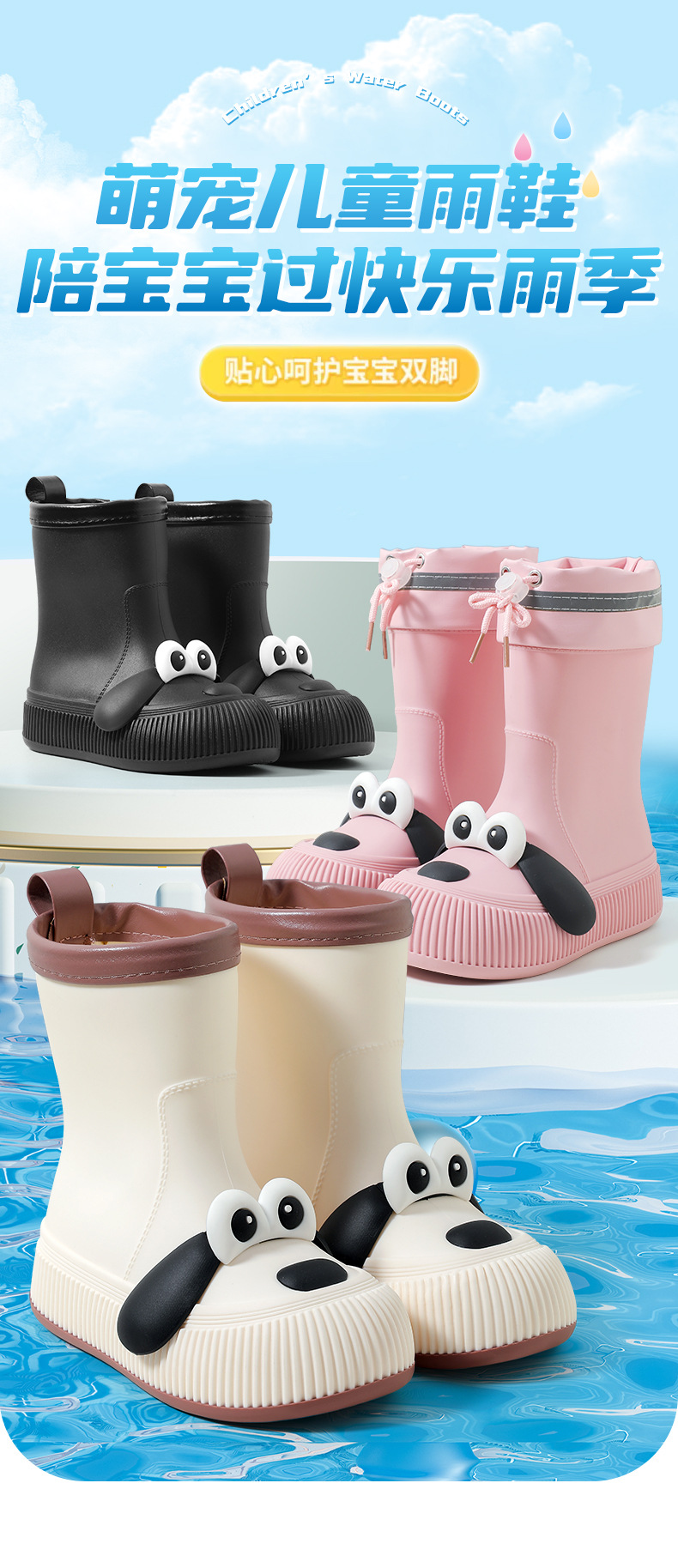 소녀를위한 여름 장화 부드러운 일본 유행 비오는 시즌 방수 외부 착용 경량 내마모성 큰 귀 장화 어린이