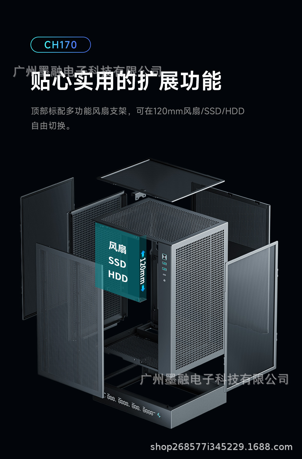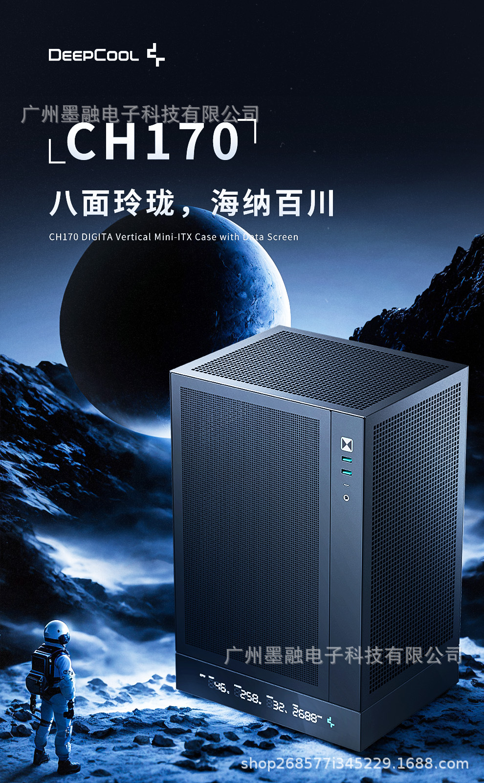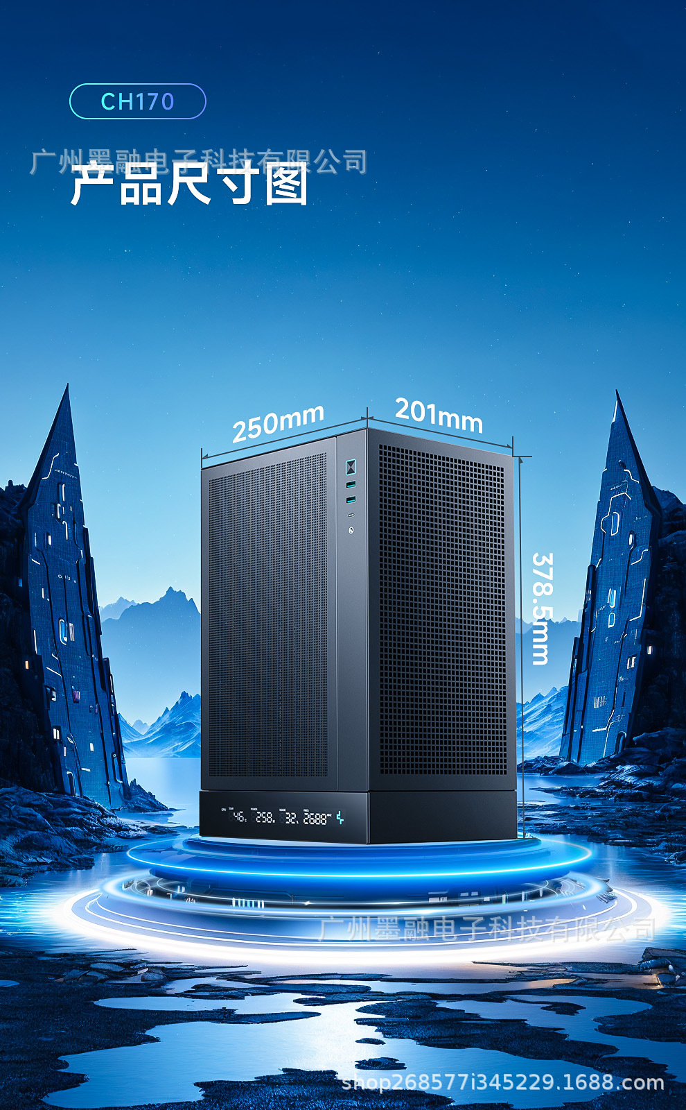 큐슈 Fengshen CH170 디지털 디스플레이 섀시 스크린 디스플레이 유형 c 메쉬 ITX 미니 ATX 전원 공급 장치 컴퓨터 섀시스토어 가기