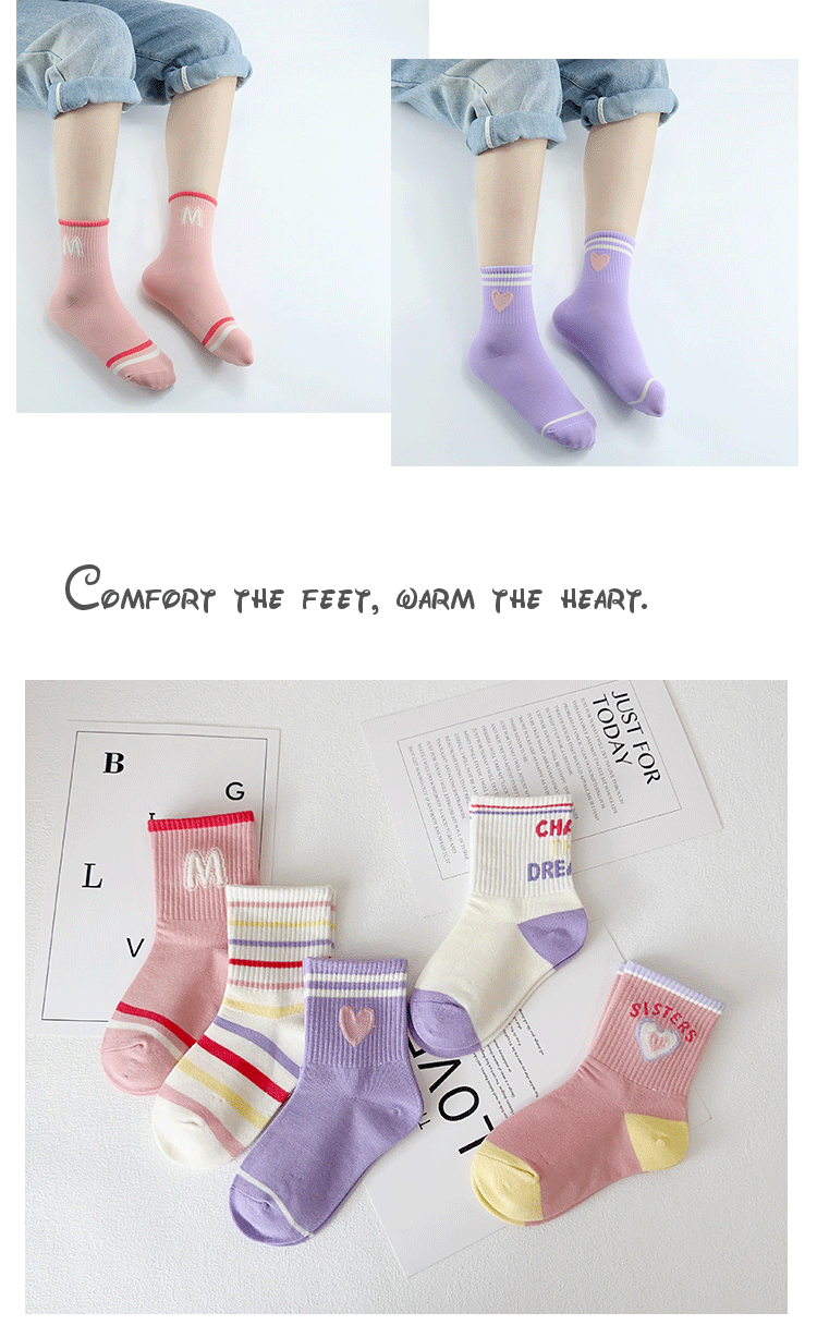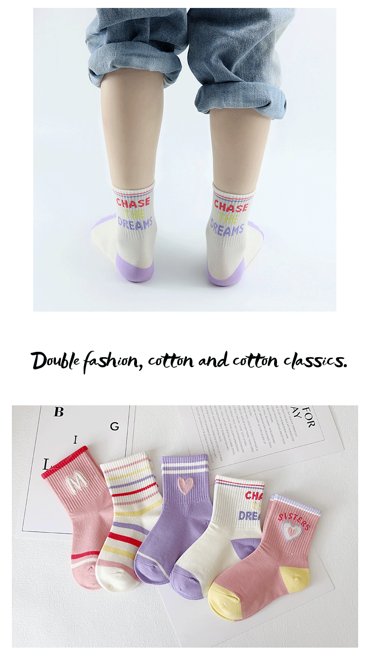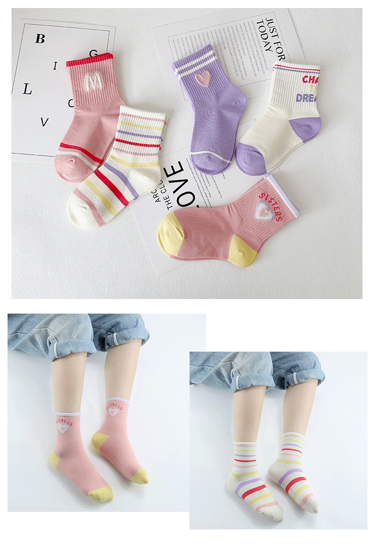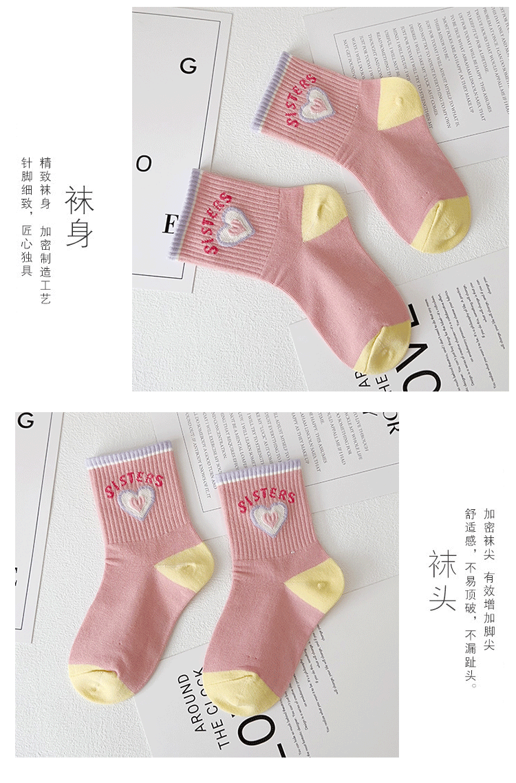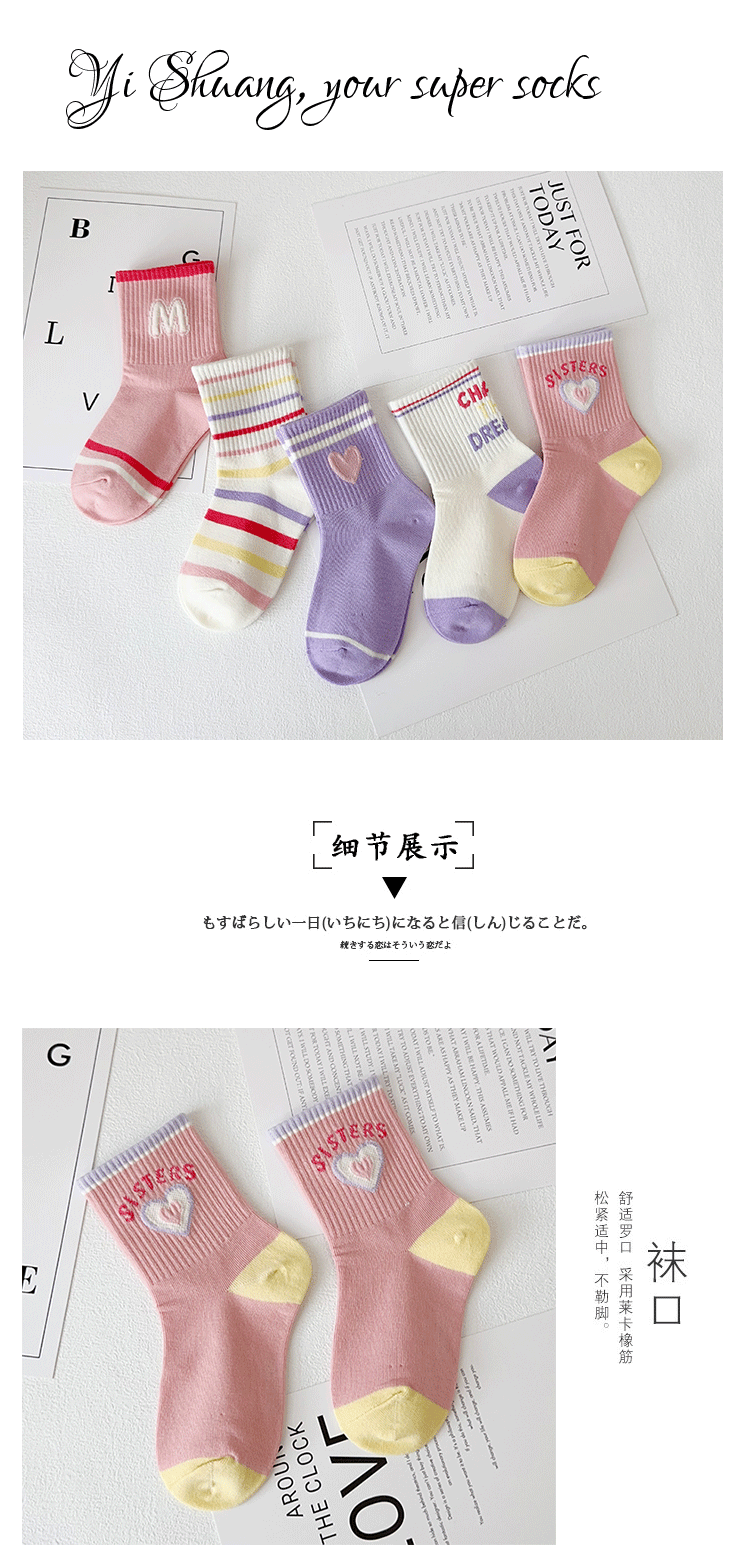 이쌍 어린이 양말 가을과 겨울 새 한국 스타일 사랑 미드 튜브 양말 빗질 면화 소녀 편지 스포츠 양말스토어 가기