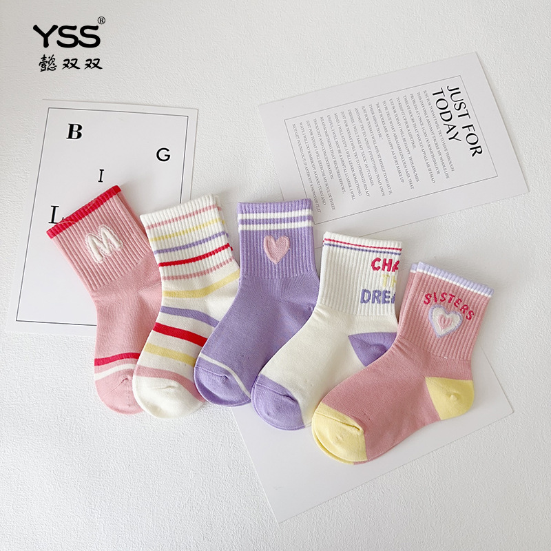 이쌍 어린이 양말 가을과 겨울 새 한국 스타일 사랑 미드 튜브 양말 빗질 면화 소녀 편지 스포츠 양말