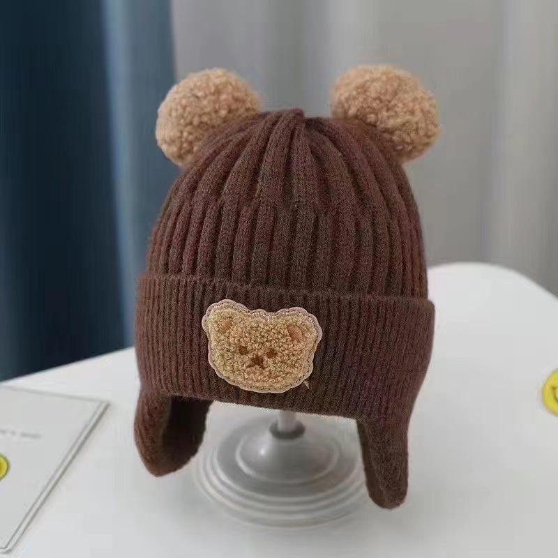 겨울철 어린이를 위한 귀여운 봉제 니트 곰 귀 보호 모자, 두껍고 따뜻한 모직 모자, 한국식 유아 모자, 따뜻함
