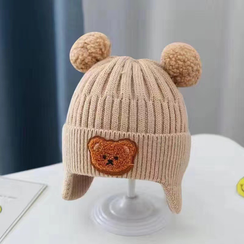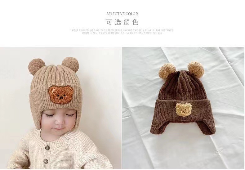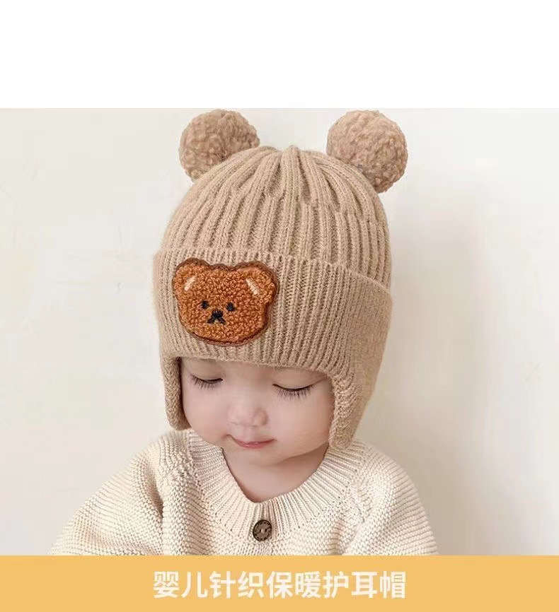 겨울철 어린이를 위한 귀여운 봉제 니트 곰 귀 보호 모자, 두껍고 따뜻한 모직 모자, 한국식 유아 모자, 따뜻함스토어 가기