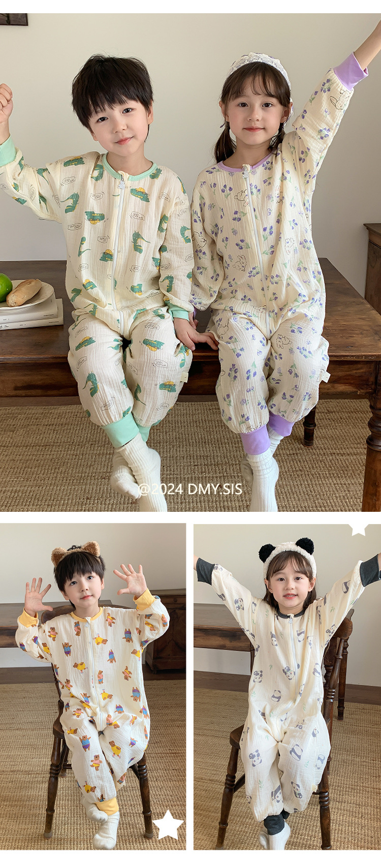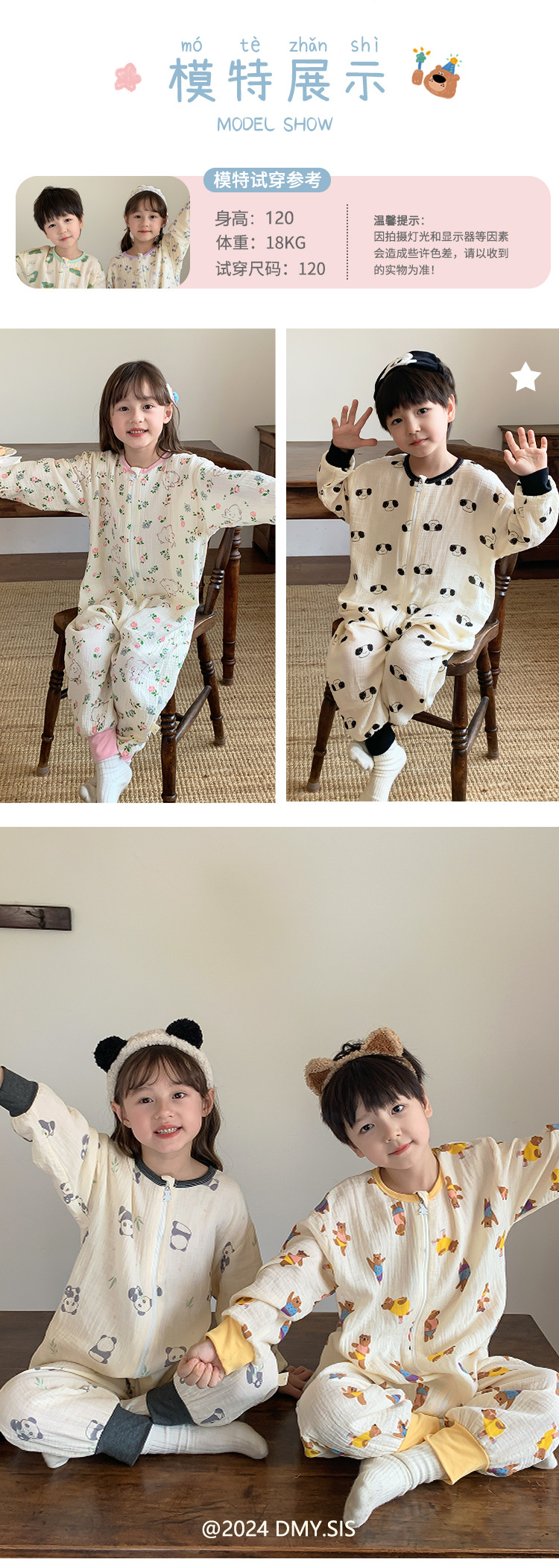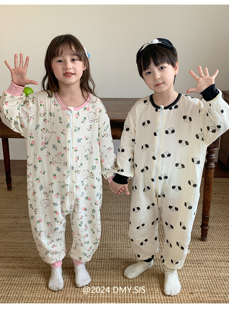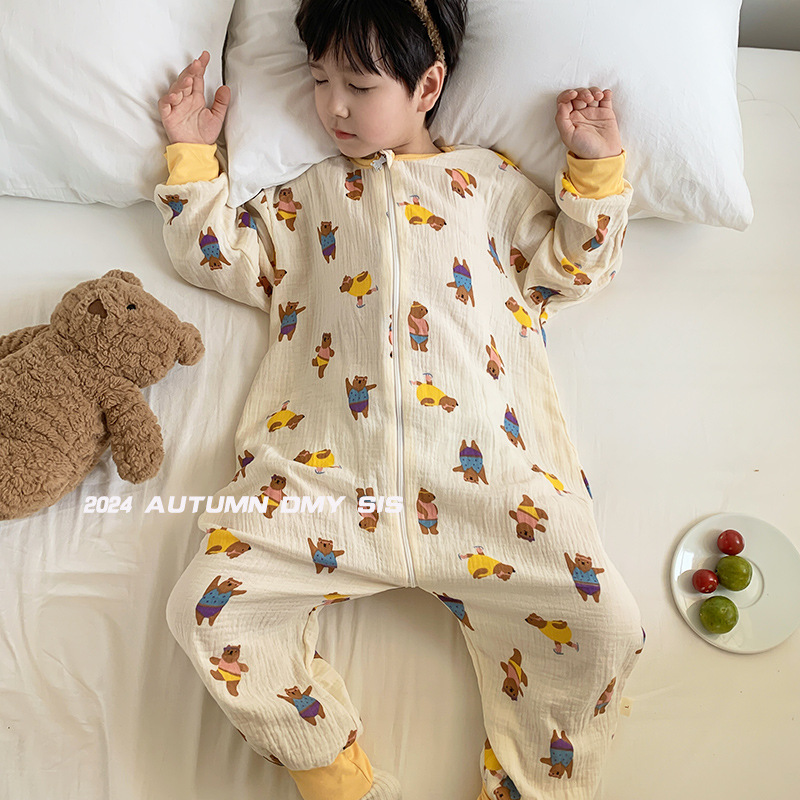 25MYSIS 가을 어린이용 이중 거즈 순면 분리형 수면복 아기 배 보호 수면복 원피스 홈웨어스토어 가기