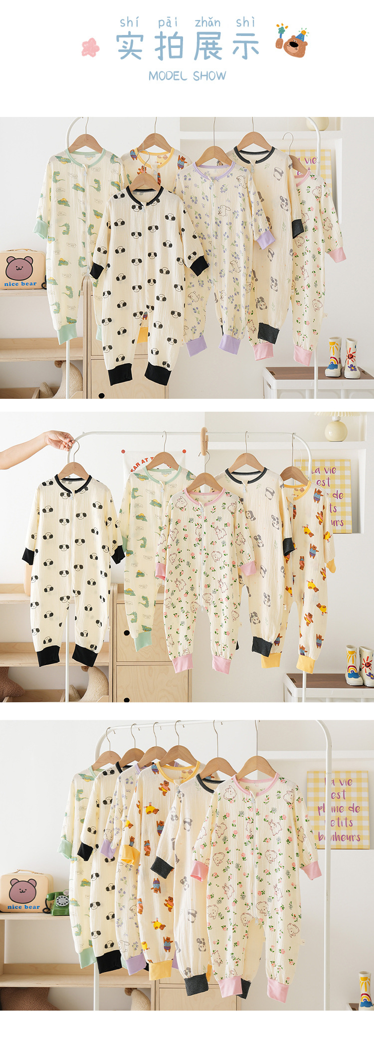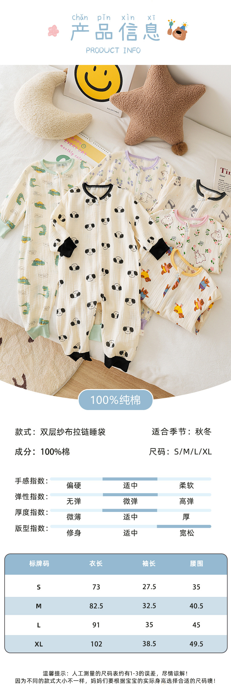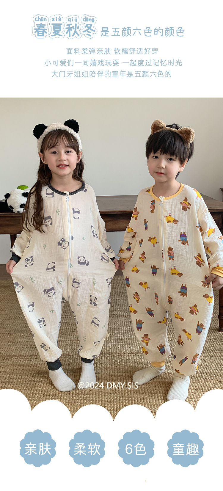 25MYSIS 가을 어린이용 이중 거즈 순면 분리형 수면복 아기 배 보호 수면복 원피스 홈웨어스토어 가기