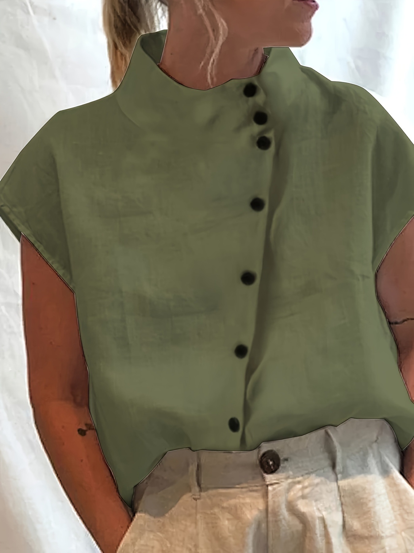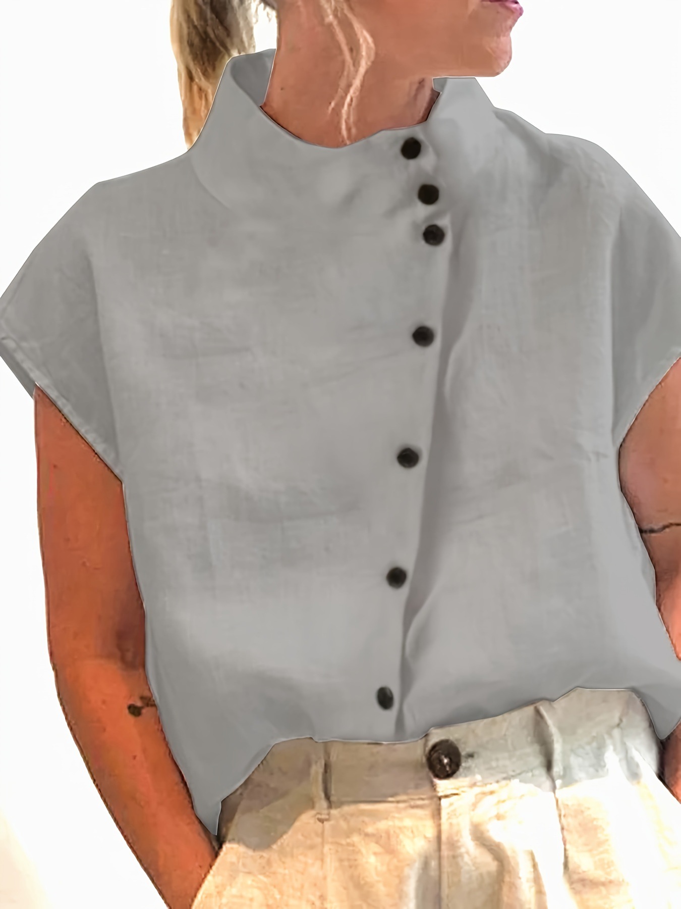 2024 유럽과 미국의 대외 무역 여성 의류 독립 역 베스트셀러 스탠드 칼라 짧은 소매 셔츠스토어 가기