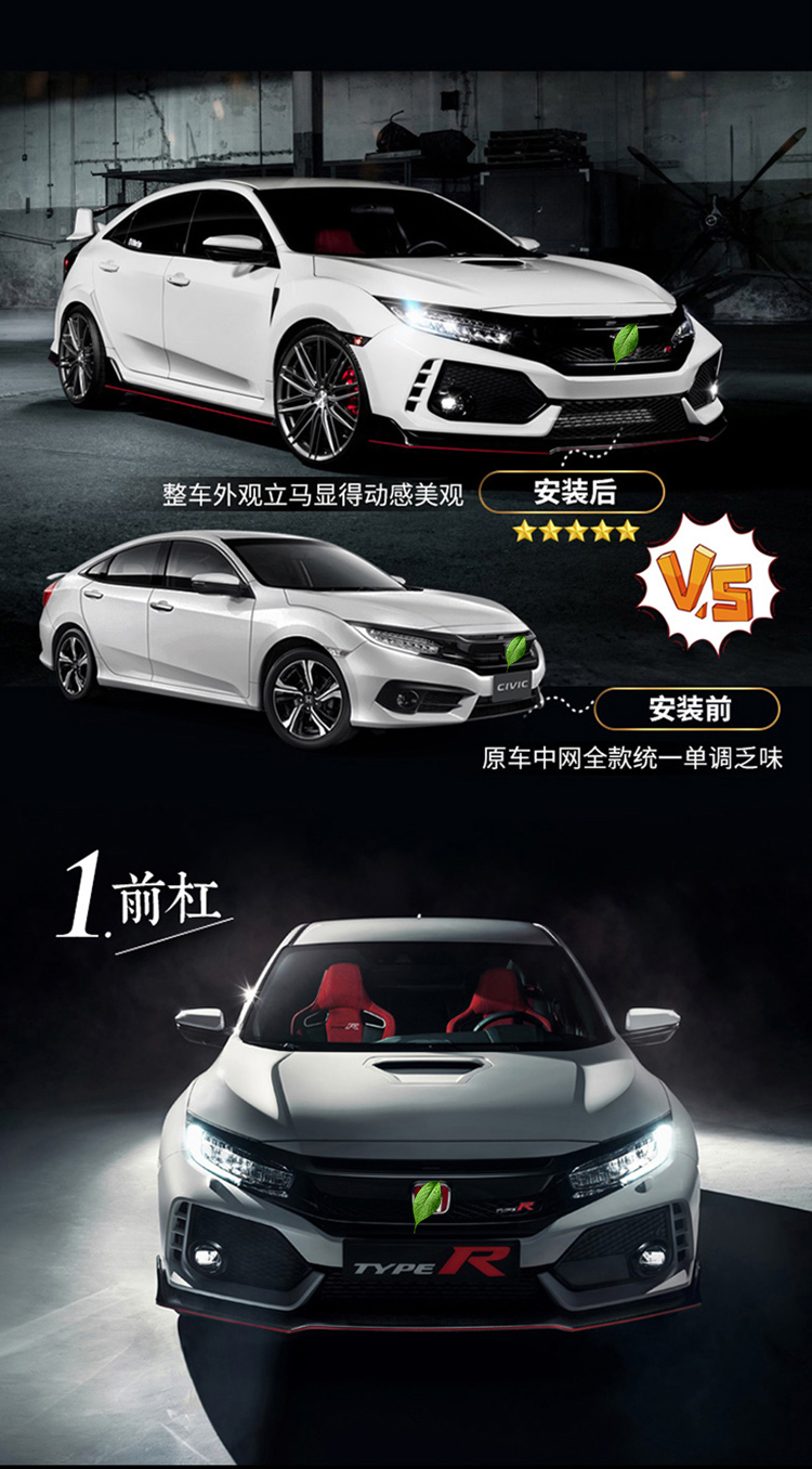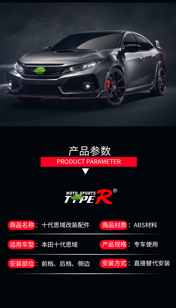 10 세대 Civic tr 대형 서라운드 특수 전면 범퍼 리어 범퍼 사이드 그룹 그물 와이드 바디 배기 파이프 타입 호루라기 축하 수정스토어 가기