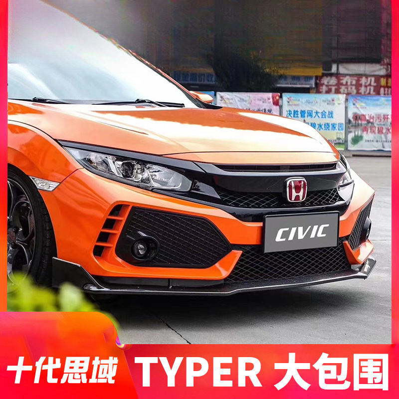 10 세대 Civic tr 대형 서라운드 특수 전면 범퍼 리어 범퍼 사이드 그룹 그물 와이드 바디 배기 파이프 타입 호루라기 축하 수정