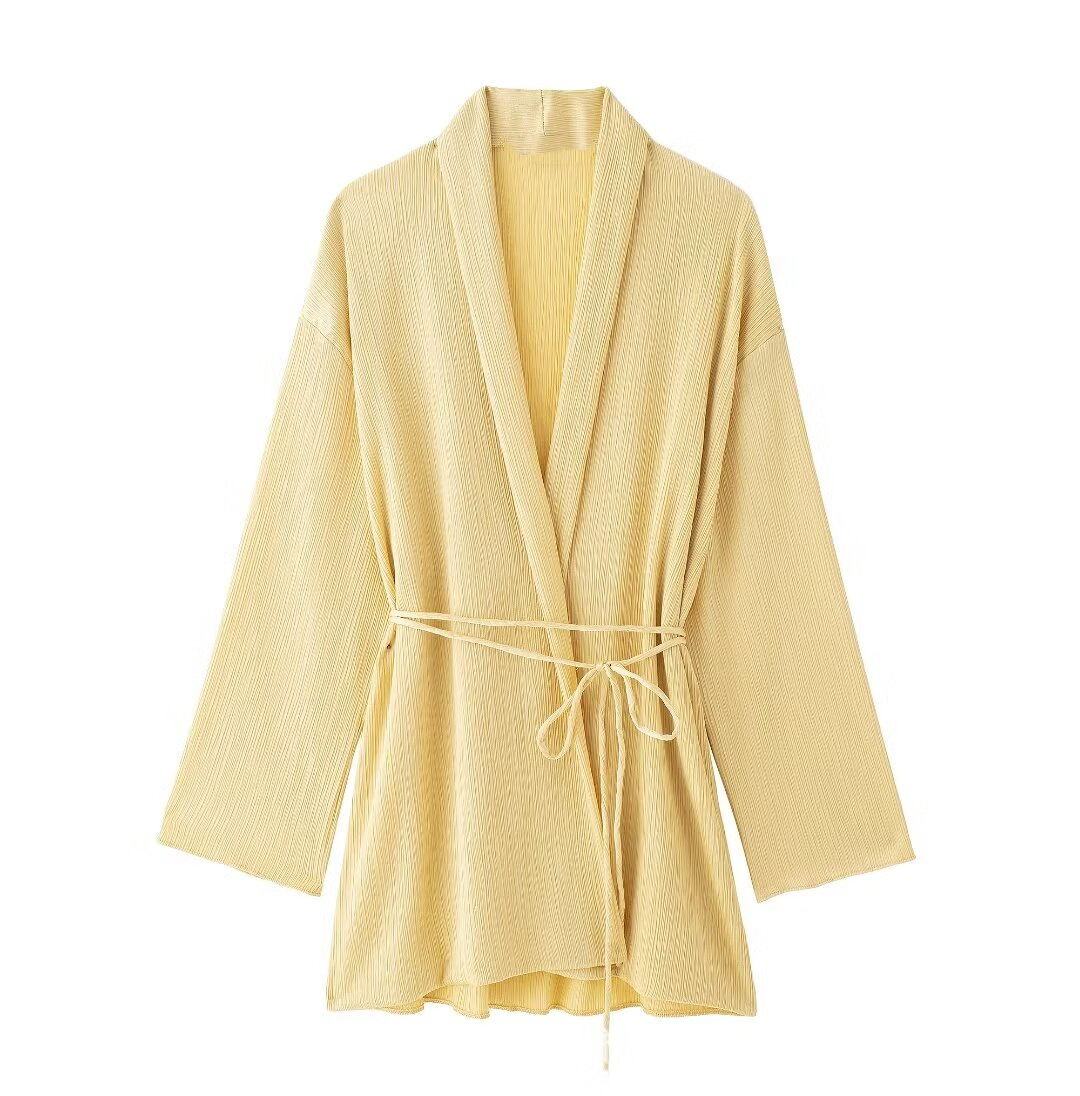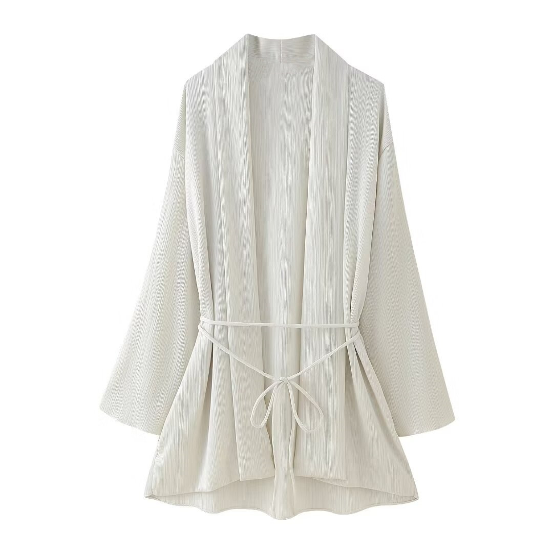 UC & ZA 국경 유럽 및 미국 스타일 여성 착용 봄과 가을 새로운 기질 슬리밍 타이 주름 기모노 코트 1058009