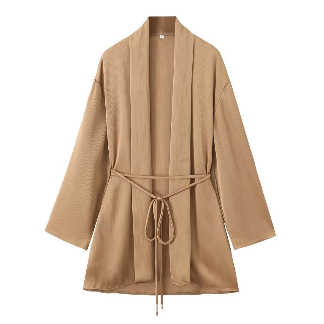 UC & ZA 국경 유럽 및 미국 스타일 여성 착용 봄과 가을 새로운 기질 슬리밍 타이 주름 기모노 코트 1058009스토어 가기